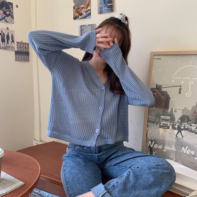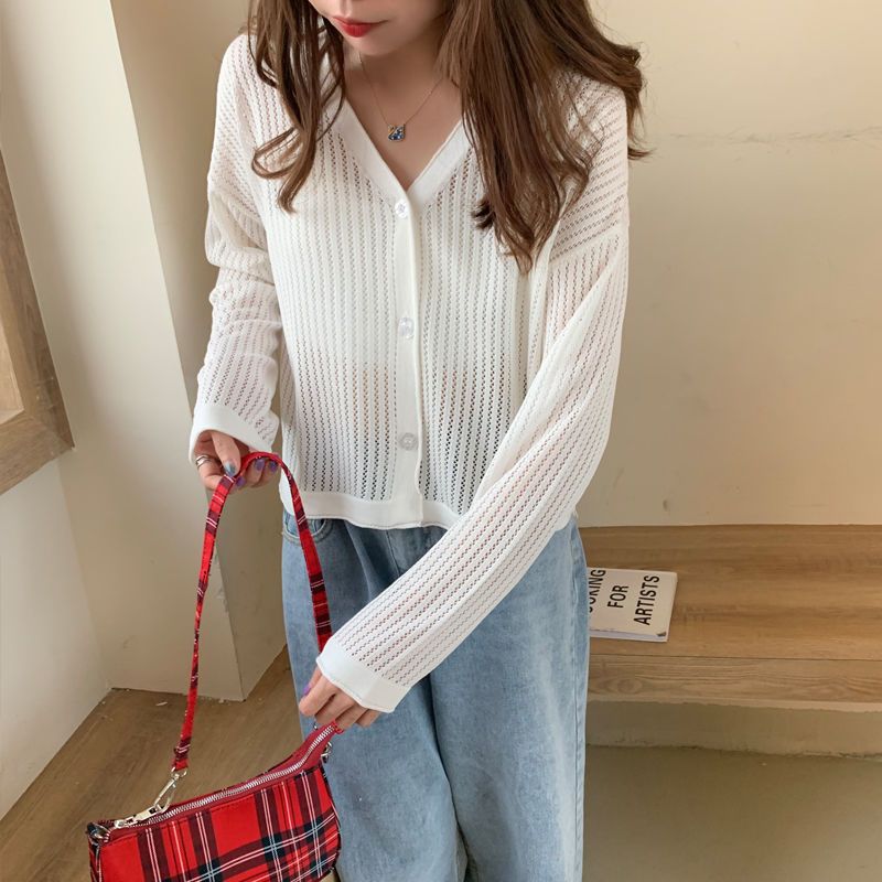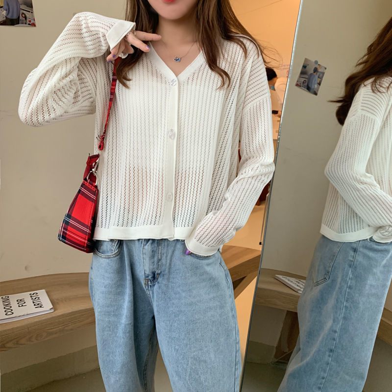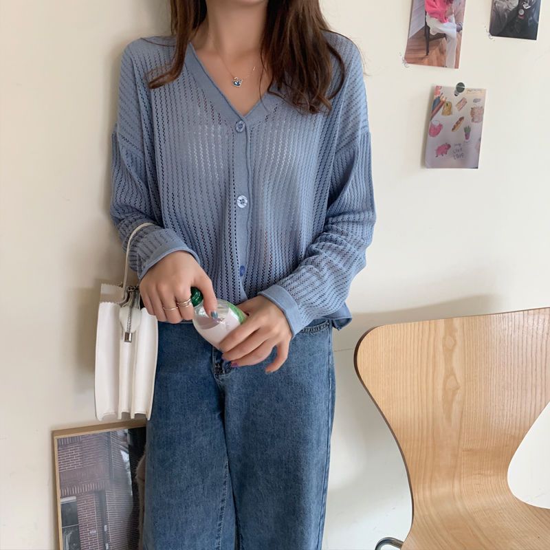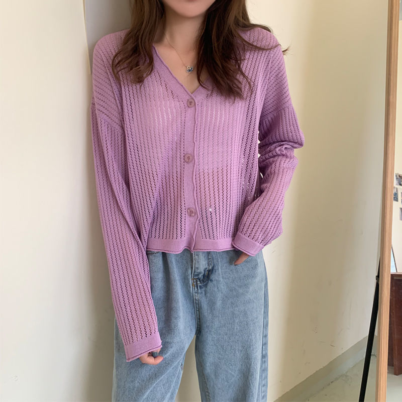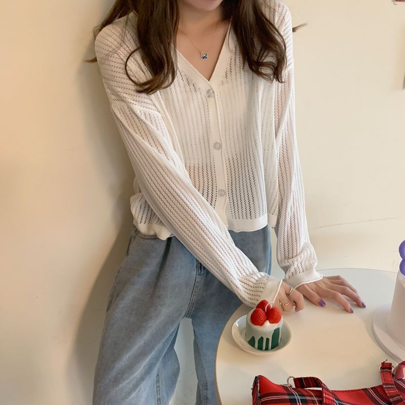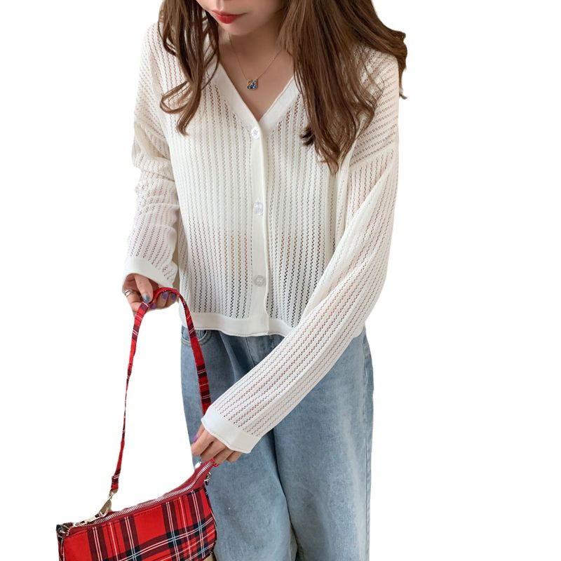 商品名:カーディガン レディース サマーカーディガン UVカット 日焼け止め 夏 羽織り 薄手 透かし 長袖 冷房対策 ラインニットカーディガン トップス Vネック 送料無料