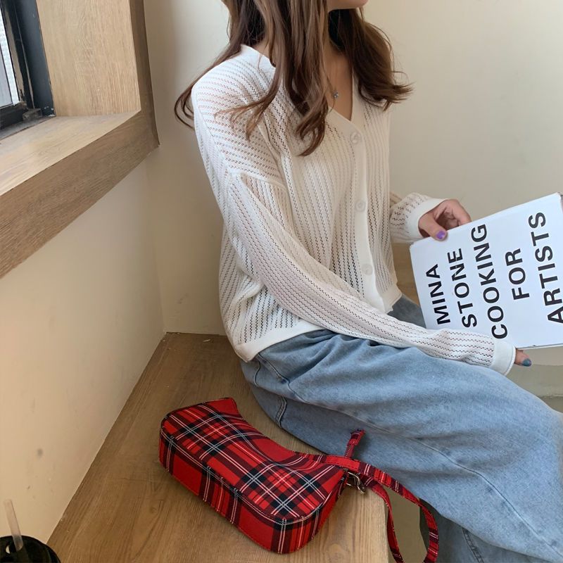 カーディガン レディース サマーカーディガン UVカット 日焼け止め 夏 冷房対策 透かし 長袖 羽織り トップス 薄手 ラインニットカーディガン