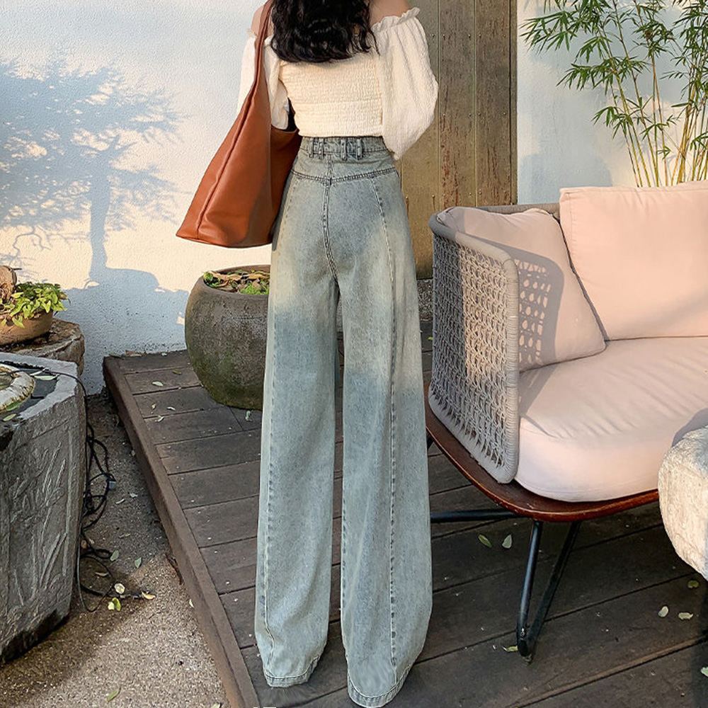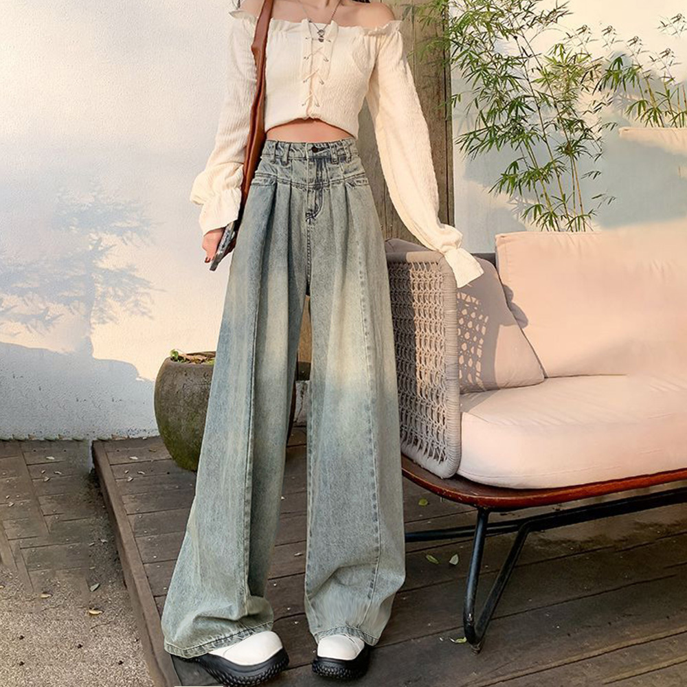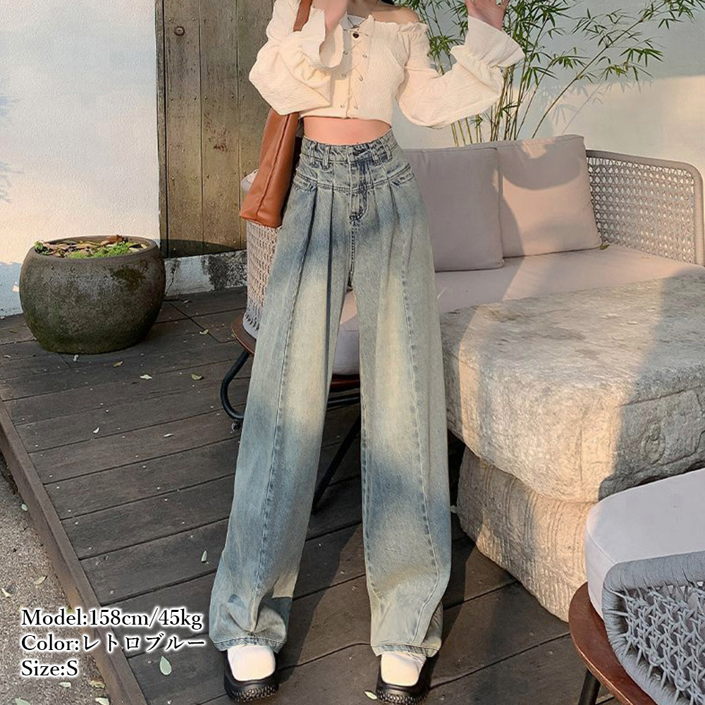 おしゃれなカジュアル感とレトロな雰囲気が融合したこのデニムワイドパンツ