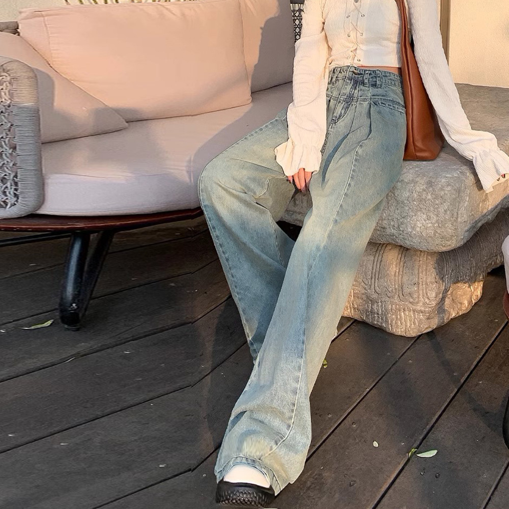 ハイウエストジーンズ 10代20代30代 ゆったりジーパン 体型カバー おしゃれストレートパンツ 美脚脚長 レトロデニム