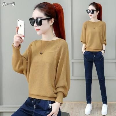 トップス レディース ニット きれいめ カジュアル 長袖 ドルマンスリーブ エレカットソー ナチュラル ボートネック おしゃれ ベージュ ブラック 黒 レッ