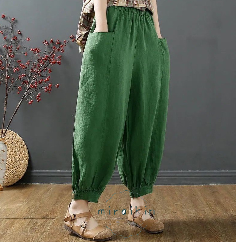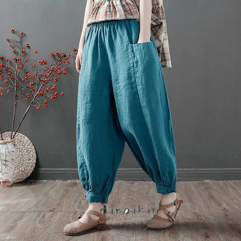 ミモレ丈パンツ 九分丈パンツ カジュアルパンツ イージーパンツ テーパード コクーン フロントポケット 可愛い大人 アジアンストア アジアンファッション