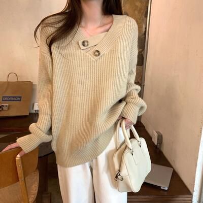 ニット セーター トップス Vネック レディース カジュアル 春 秋 ドロップショルダー おしゃれ 可愛い ベージュ きれいめ ローゲージニット 黒 カーキ ブラック