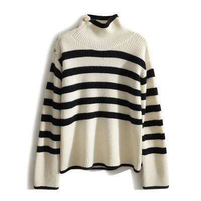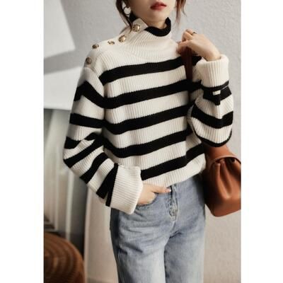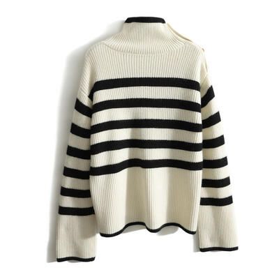 ニット トップス レディース セーター ボーダー カジュアル きれいめ 大きいサイズ タートルネック フェミニン ハイネック エレ 長袖 ゆったり おしゃれ 可愛い