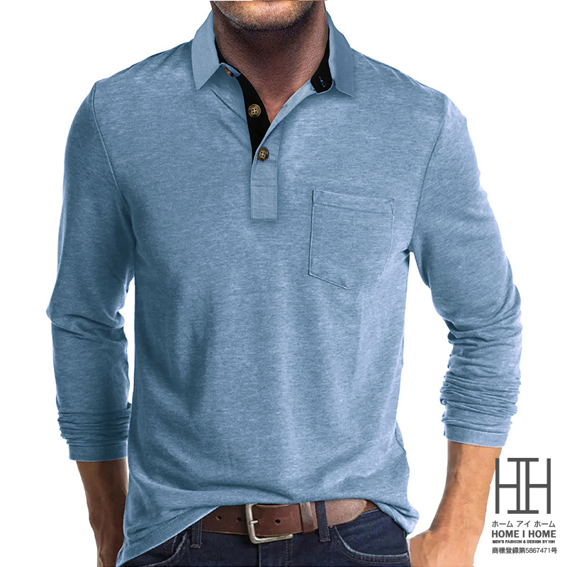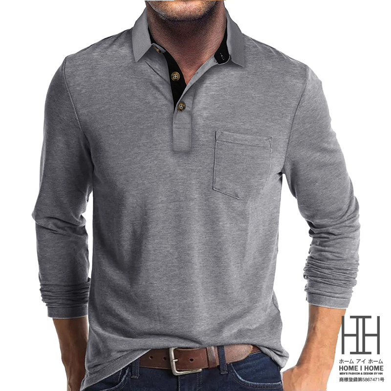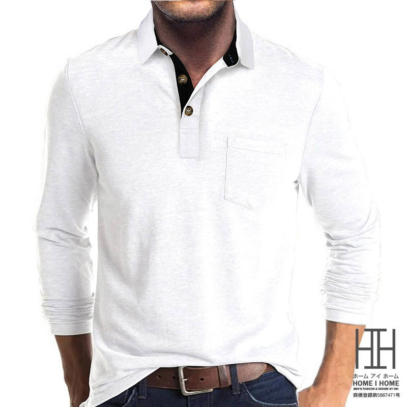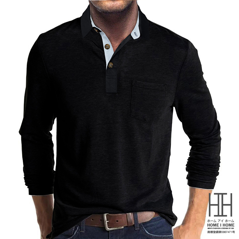 ポロシャツ メンズ 長袖 ゆったり 胸ポケット付き ミリタリー系 切り替えデザイン お兄系 長袖ポロシャツ メンズポロシャツ トップス