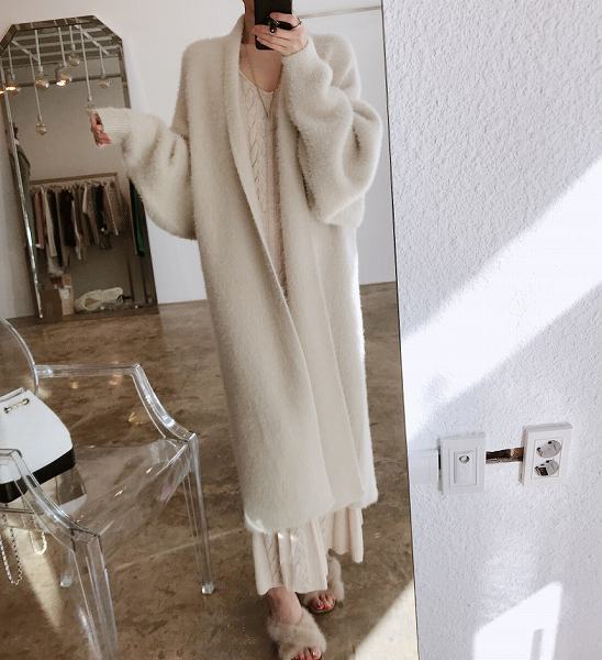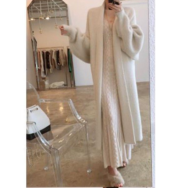 前開きロングカーディガン ホワイト米 長袖 ゆったりルーズ 上品 フリーサイズお出かけ女子会20代30代40代50代60代