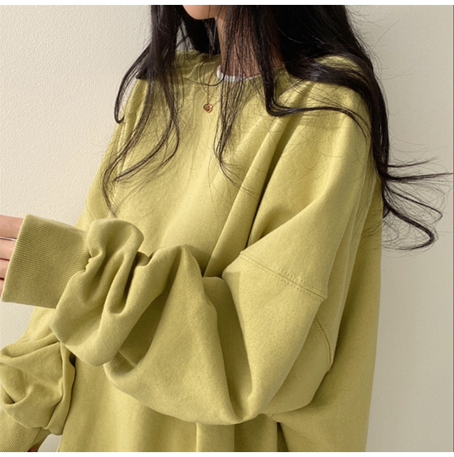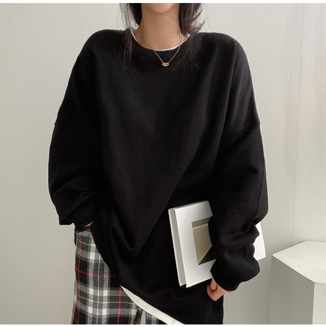 トレーナー プルオーバー トップス レイヤード 長袖 重ね着風 無地 スリット Tシャツ スウェット ゆったり 切り替え