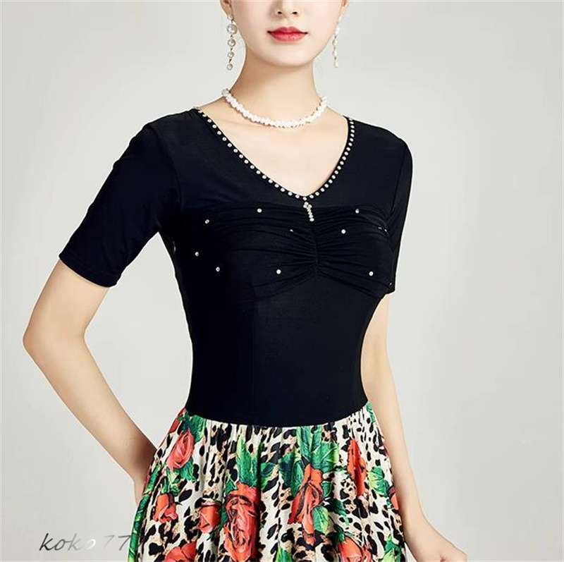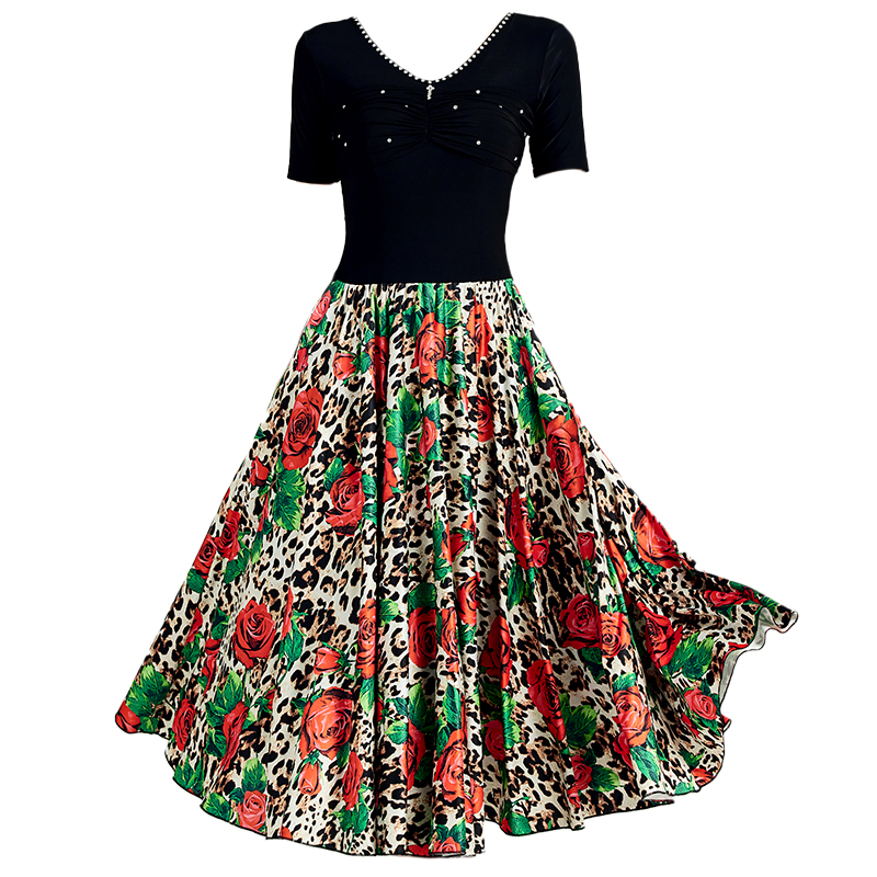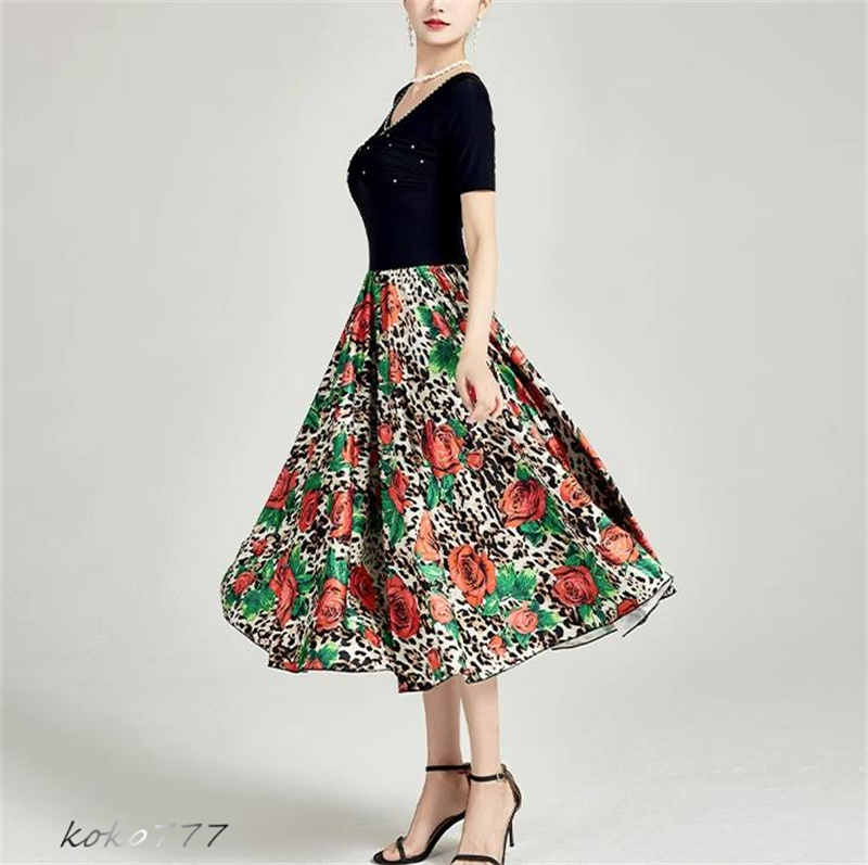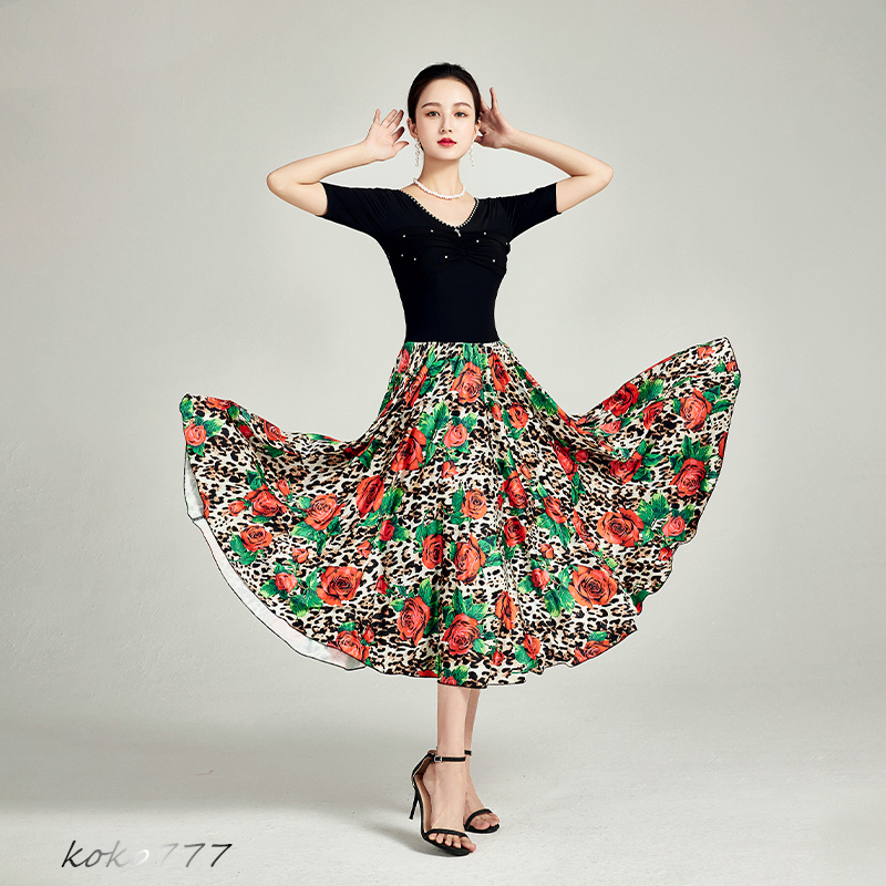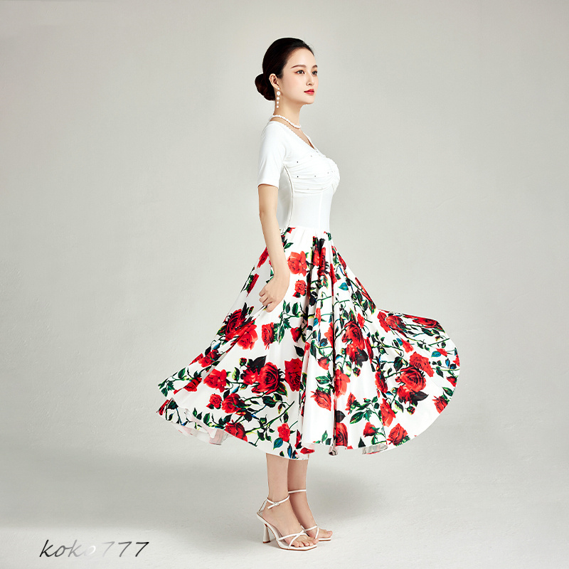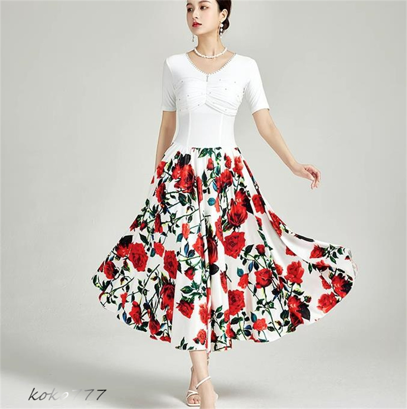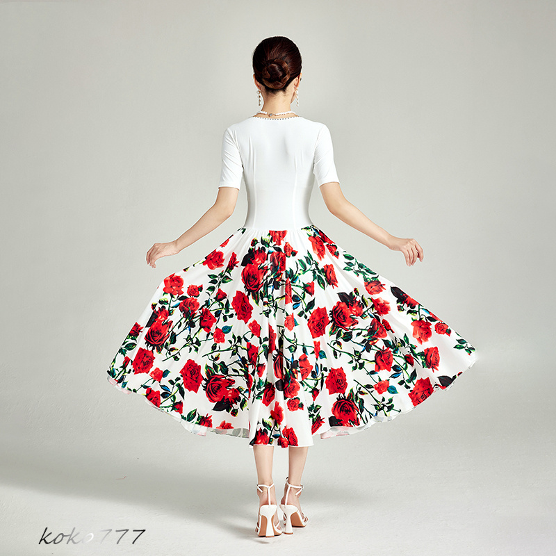 ワンピース レディース ロングドレス ラテンダンス ウェア パーティー イベント 発表会 社交ダンス ワルツ モダンダンス ナショナルダンス 花柄 舞台衣装