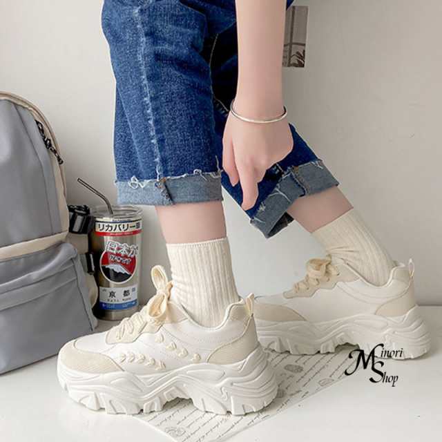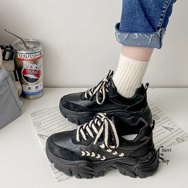 厚底スニーカー レディース シューズ 厚底 韓国 ダッドスニーカー 秋冬 白 黒 靴 細見え抜群 ヒール5CM