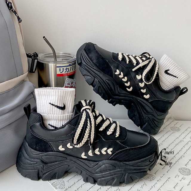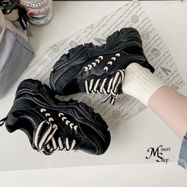 厚底スニーカー レディース 厚底 韓国 ダッドスニーカー 秋冬 靴 黒 白 細見え抜群