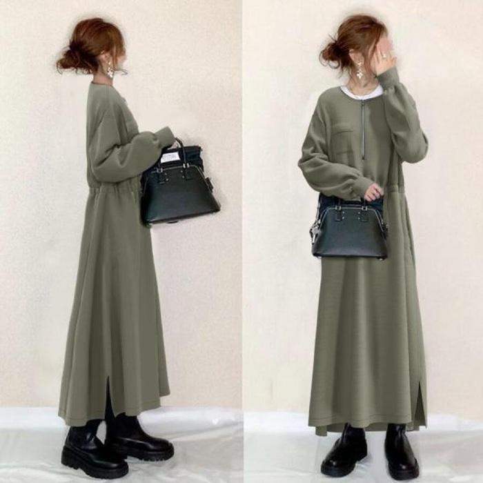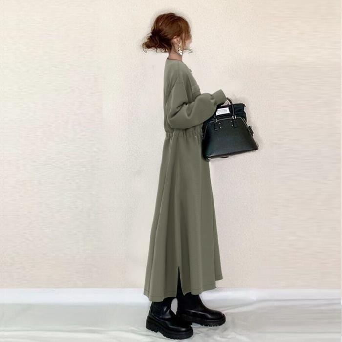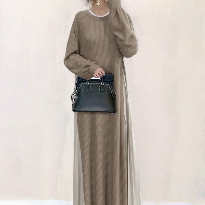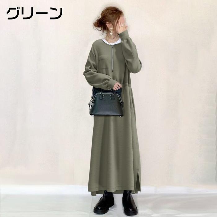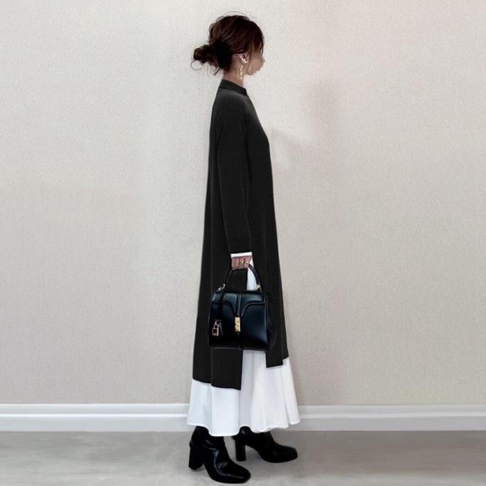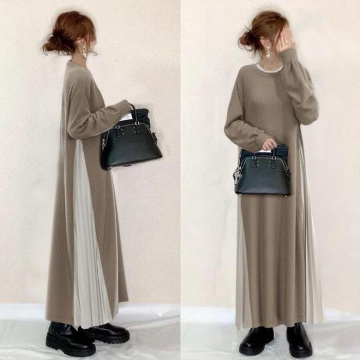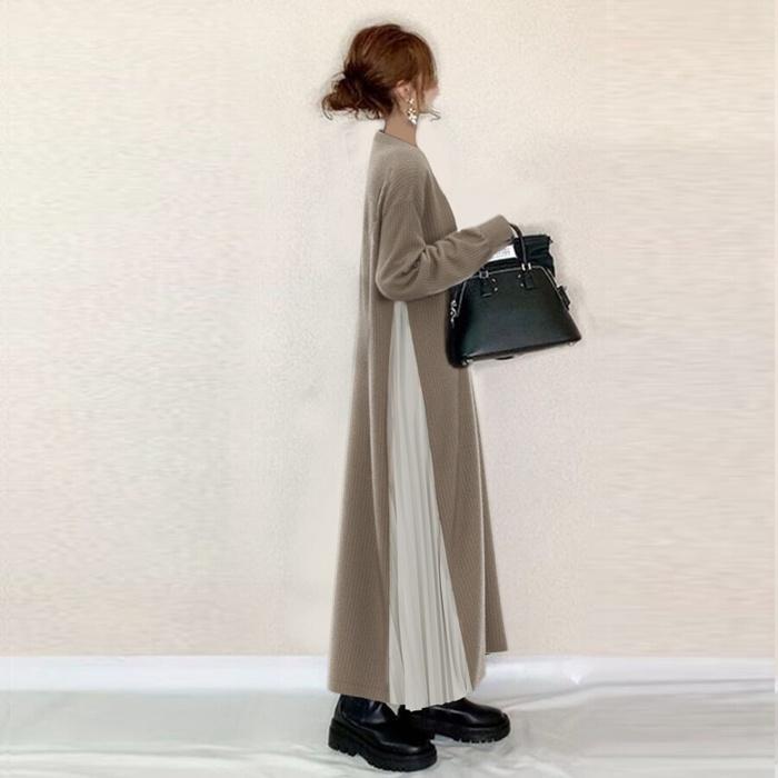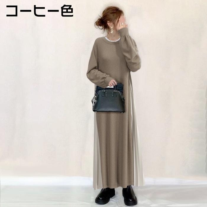 ワンピース ニットワンピース レディース ニット 長袖 ロングワンピース マキシワンピース ボトルネック クルーネック 切り替え プリーツ 重ね着風 レイヤード風 体型カバー ゆったり 20代 30代 40代 通勤 通学 お出かけ カジュアル おしゃれ 春 秋 冬