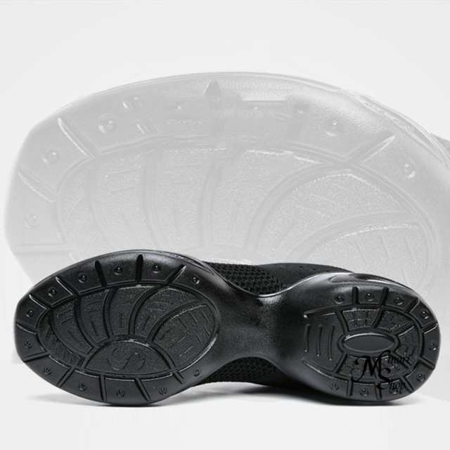 靴底が前後二つに分かれたスプリットソール、土踏まずの底がないタイプ。しっかりしていて踊りやすいダンススニーカー!耐磨耗の靴底、特別な加工により、滑りにくいです。柔らか厚めの靴底で履きやすい。シックなブラックの洗練されたデザイン。