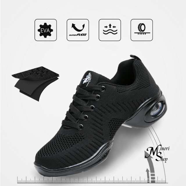 着地時の衝撃を緩和し、疲労を軽減するエアクッション。曲げても平気!靴底が強い耐摩耗性と耐曲性のダンスシュ一ズ!ダンススニーカーならではのアーチ型の立体形状はフレキシブルで動きやすい。激しい足の動きに対応します。または足にフィットし可動域が広がります。靴擦れが少ない、踊る為のバランスと安定感。