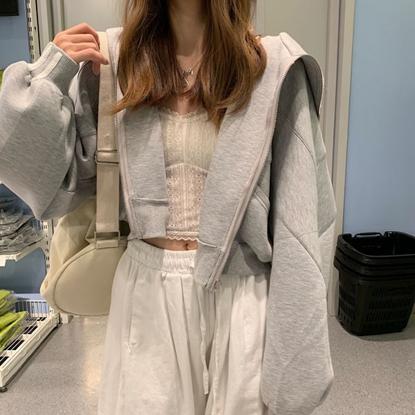 パーカー うさぎ ショート丈 うさ耳 うさみみパーカー 兎耳パーカー かわいい ジャケット レディース トップス フード付き 長袖 ジップアップパーカー ゆったり キュート カジュアル 体型カバー リラックス ガーリー グレー 灰色 N1ZB