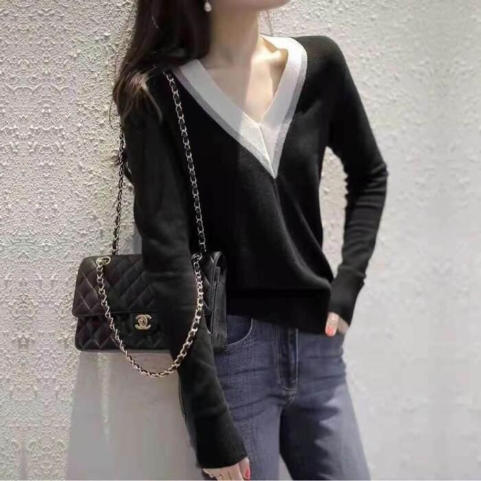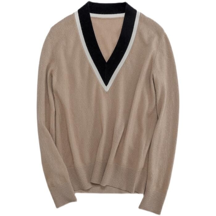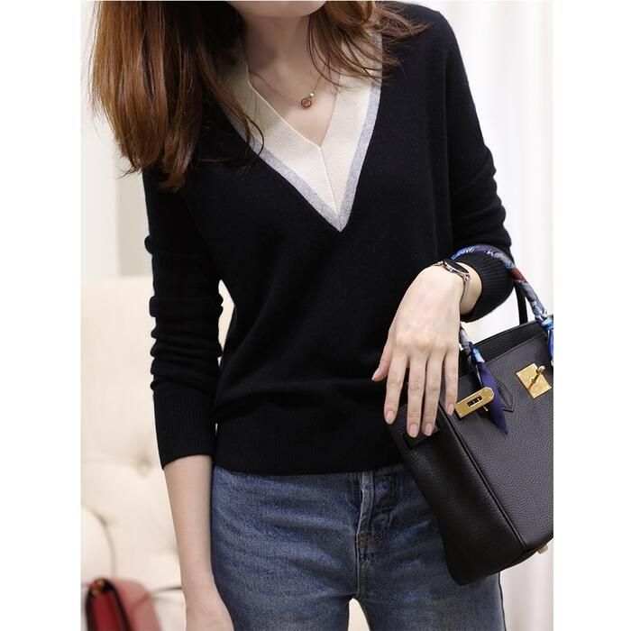 トップス ニット Vネック セーター 長袖 マルチ配色 大人可愛い きれいめ シンプル 通勤 ベーシック レディース カジュアル おしゃれ フェミニン