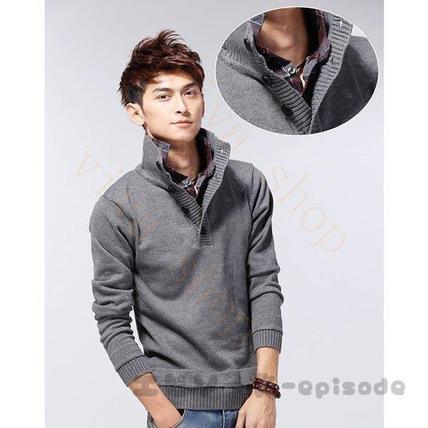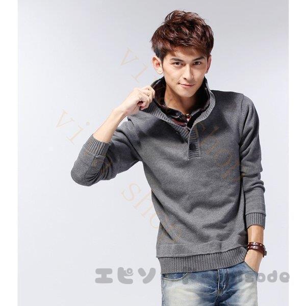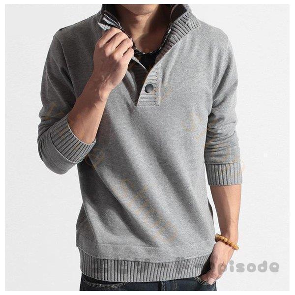 ニットセーター ニット メンズ 重ね着風 折り襟 長袖 トップス ファッション プルオーバー 着やせ セーター 冬 秋 無地 防寒 春