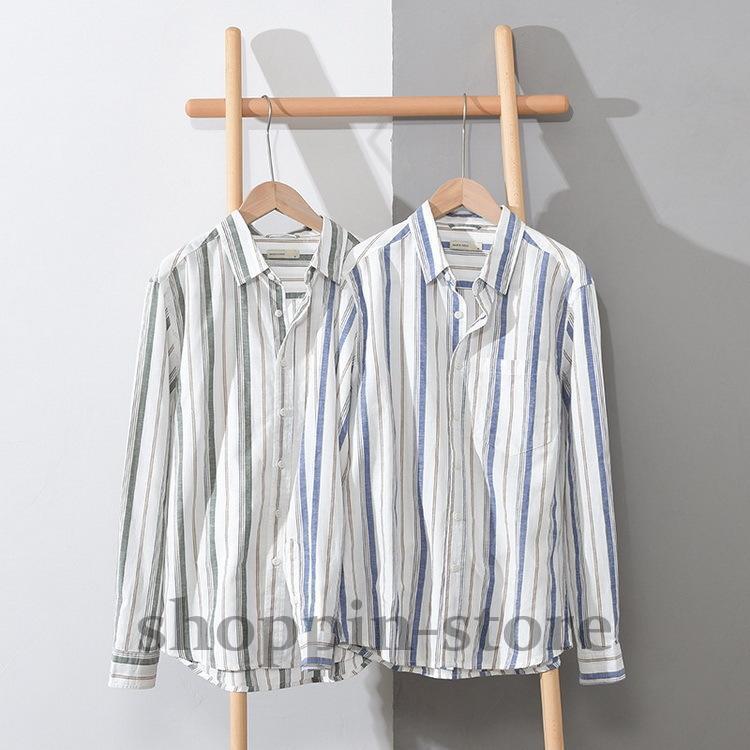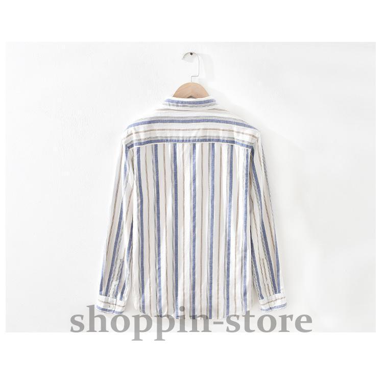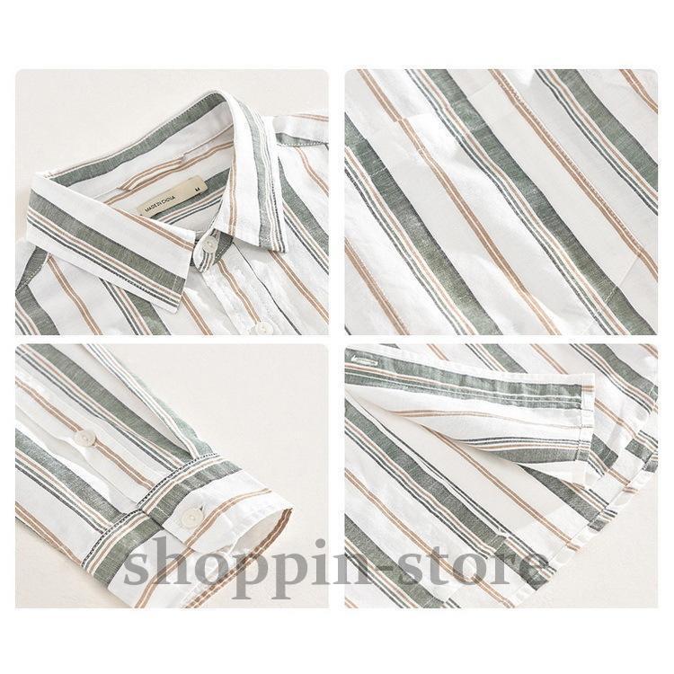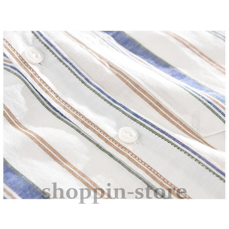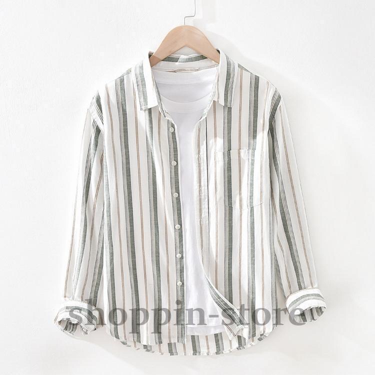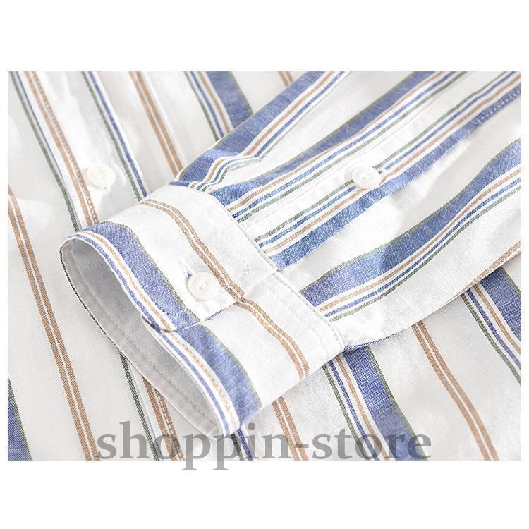綿麻シャツ メンズ カジュアルシャツ ストライプシャツ トップス 長袖 清涼 夏 春 春 爽快