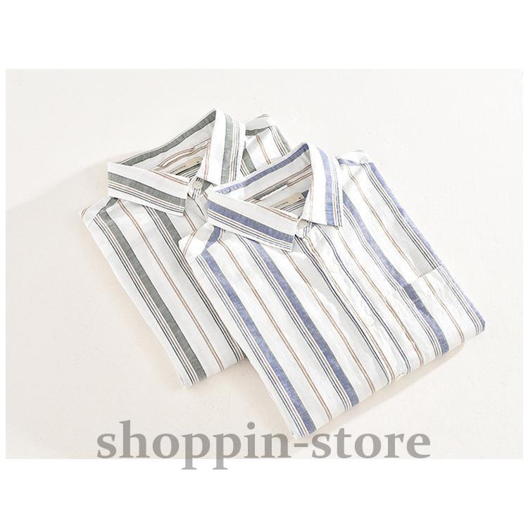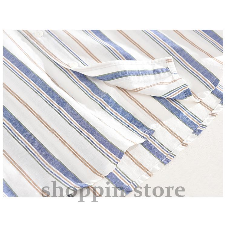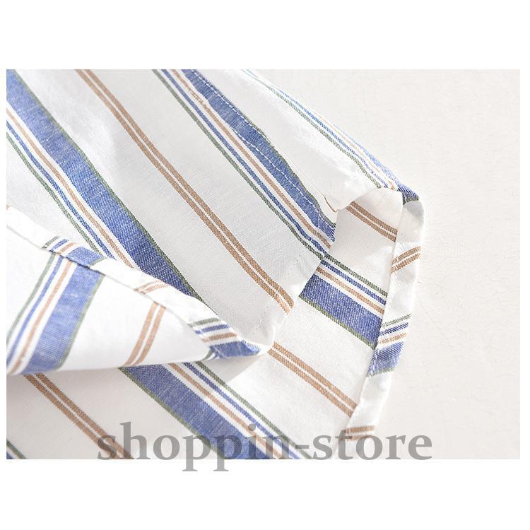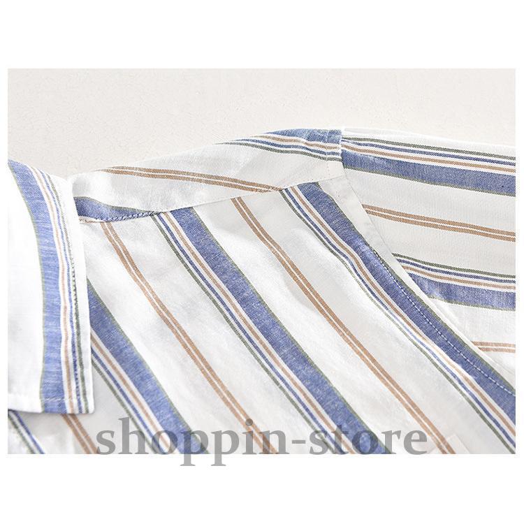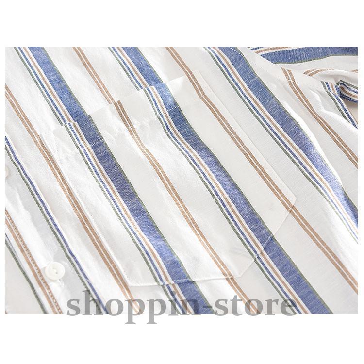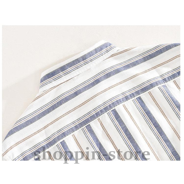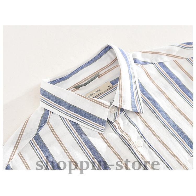綿麻シャツ メンズ カジュアルシャツ ストライプシャツ トップス 長袖 清涼 夏 春 春 爽快