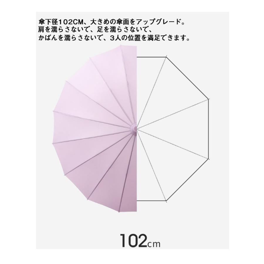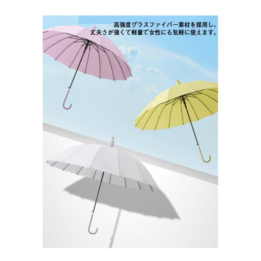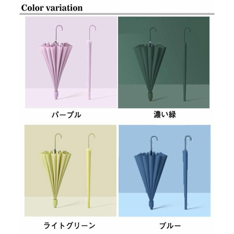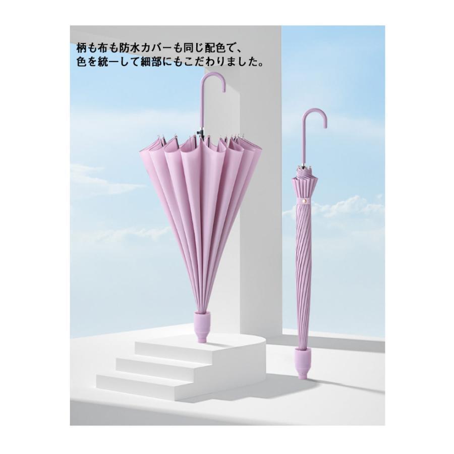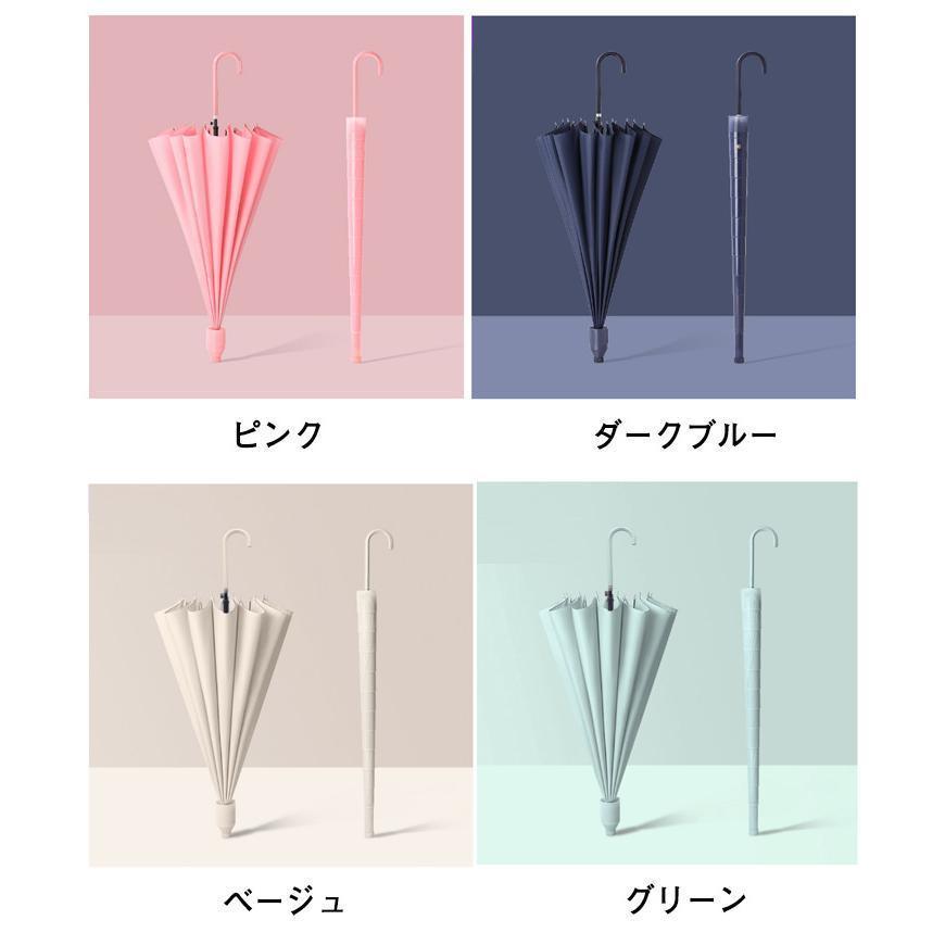 16本骨 長傘 ワンタッチ傘 傘 紳士傘 レディース 耐風 撥水 グラスファイバー傘骨 軽量 スライドカバー付き 無地 3層防水 ジャンプ傘