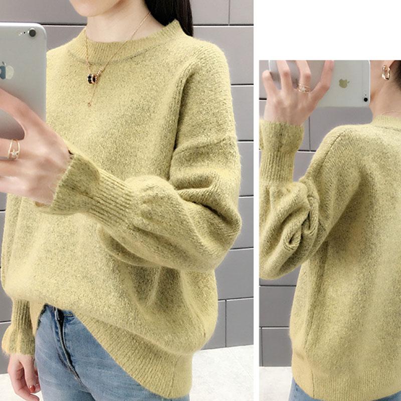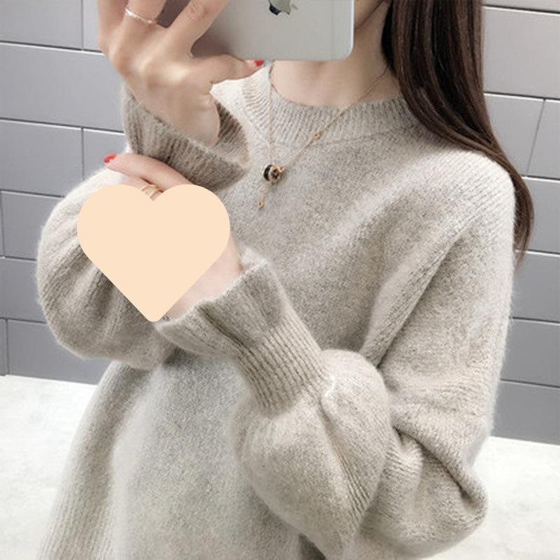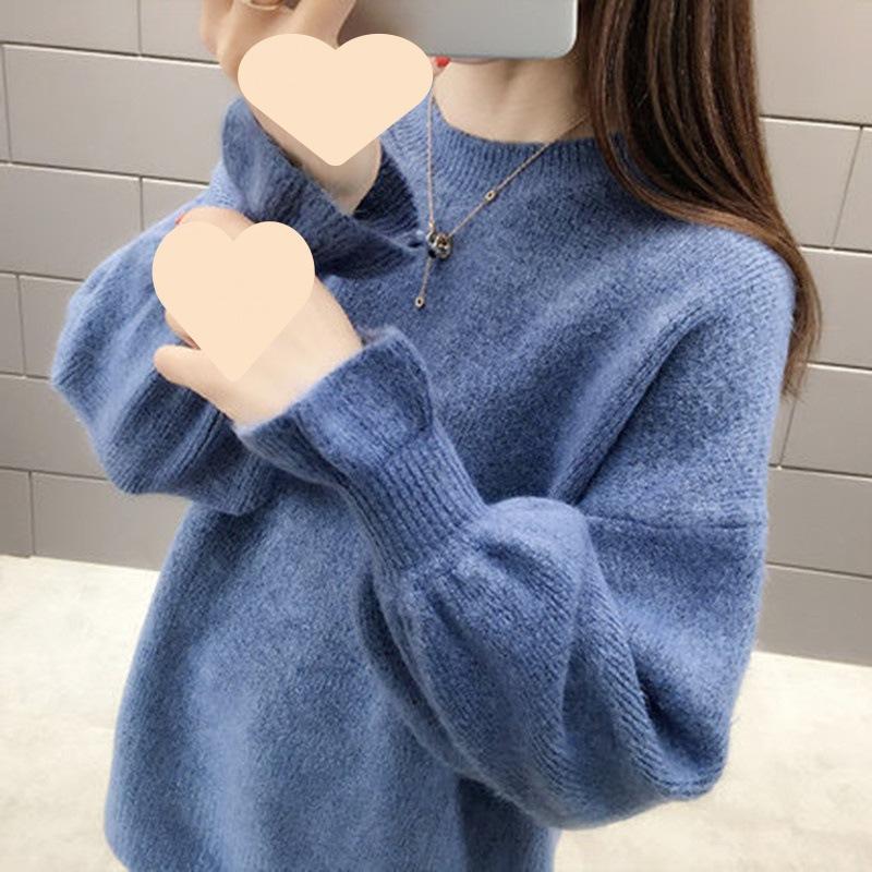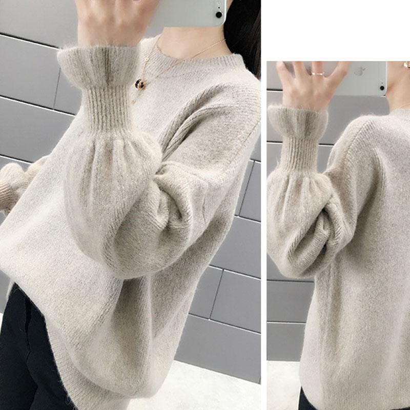 ニットセーター レディース 秋冬 長袖 ニットトップス 無地 無地セーター パフスリーブ 厚手 セーター ゆったりプルオーバー おしゃ ショット丈