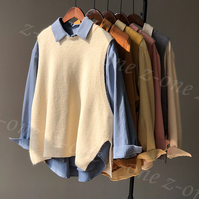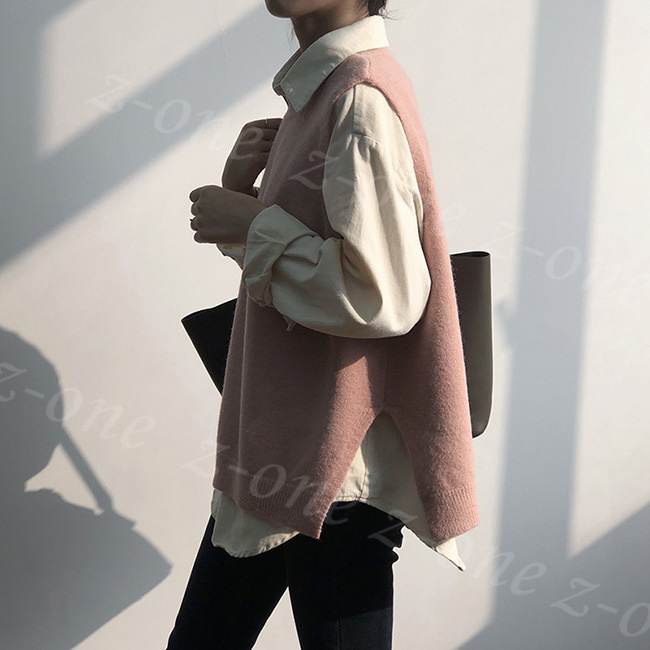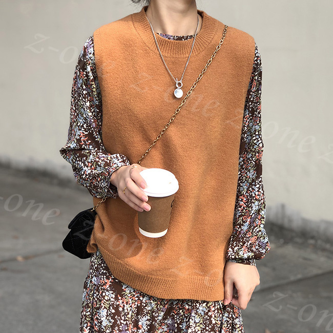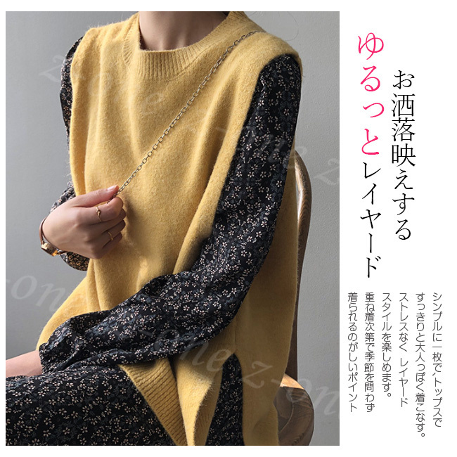 ベスト ニット プルオーバー レディース 新作 ラウンドネック 可愛い 春 体型カバー 秋冬 ゆったり 保温 レイヤード 学生 通勤 柔らかい 通学