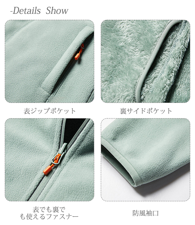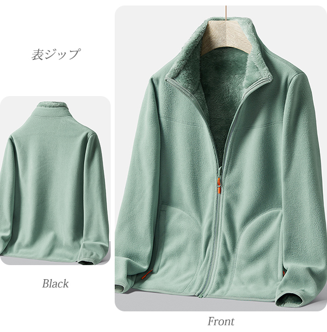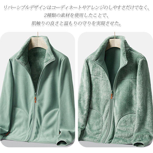 ジップアップリバーシブル ポーラーフレディース メンズ スウェット長袖 もこもこ 裏ボア