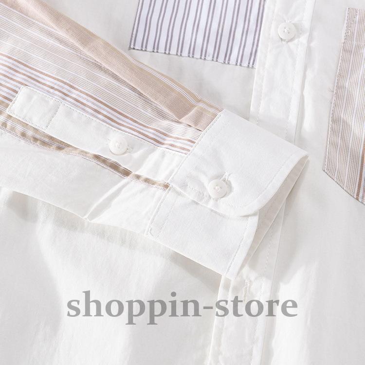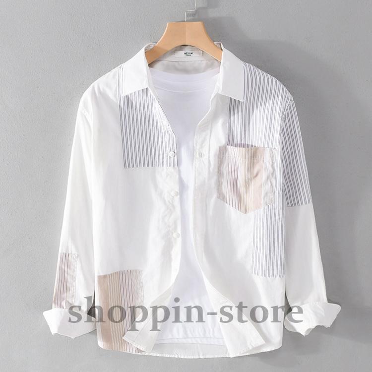 カジュアルシャツ メンズ シャツ トップス 長袖シャツ ストライプ きれいめ 切り替え