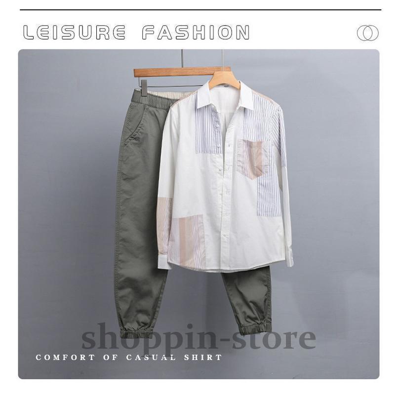カジュアルシャツ メンズ シャツ トップス 長袖シャツ ストライプ 切り替え きれいめ