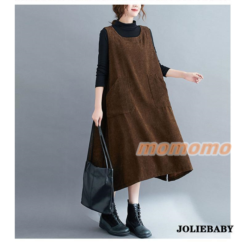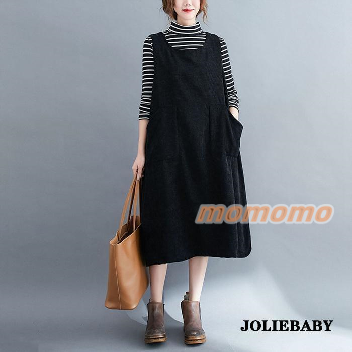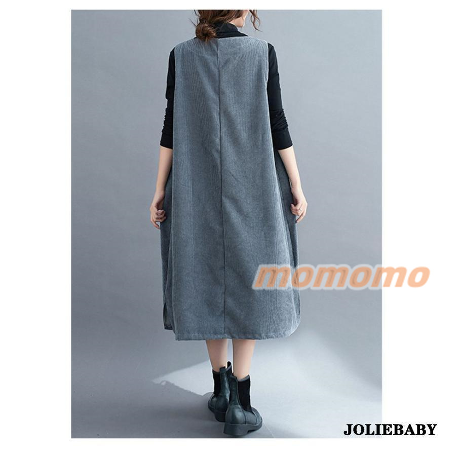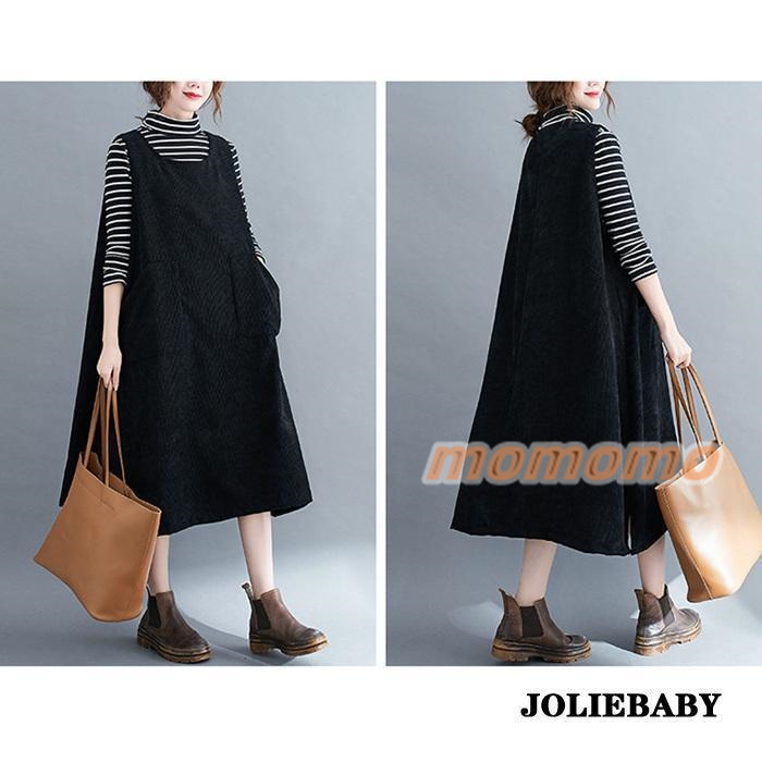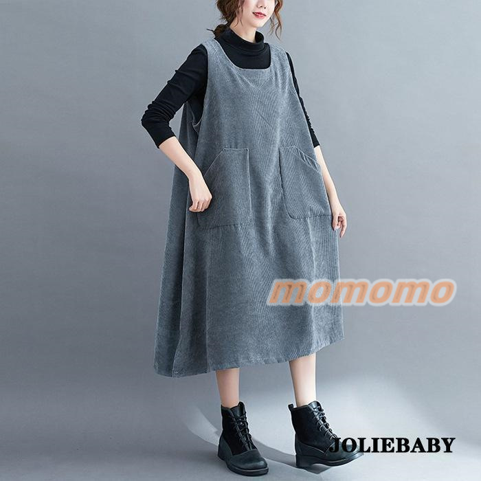 ジャンパースカート ベストワンピース コーデュロイ ジャンパースカート チュニック レディース ノースリーブ ロングワンピース ゆったり 膝丈 無地 秋冬 防寒 ナチュラル 大人