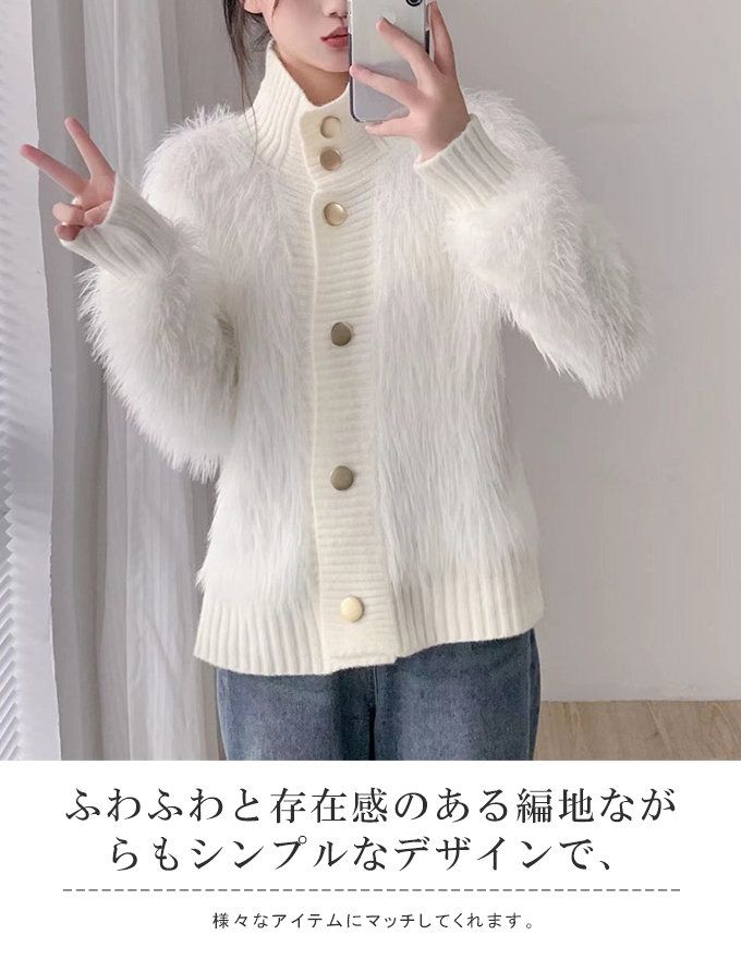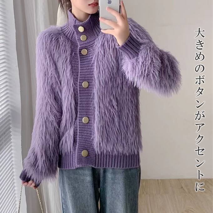 シャギーハイネックカーディガン アウター レディース 羽織 ニットガウン スタンド