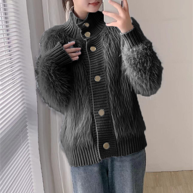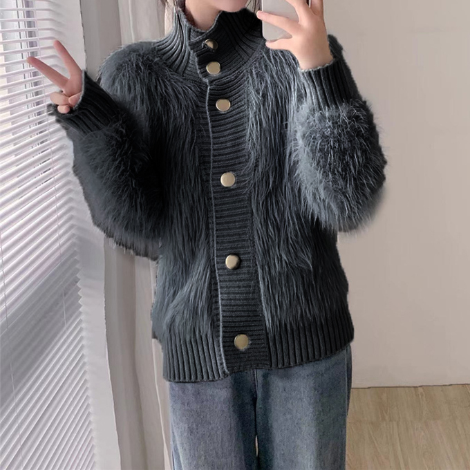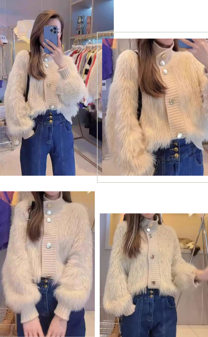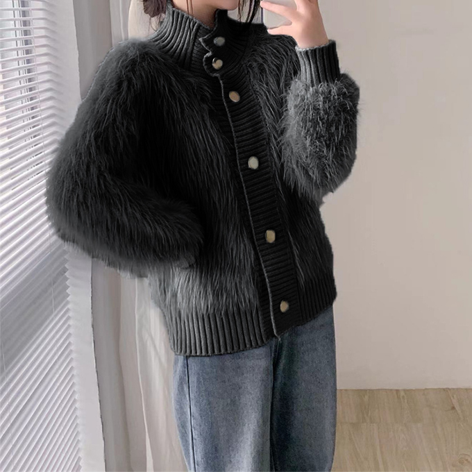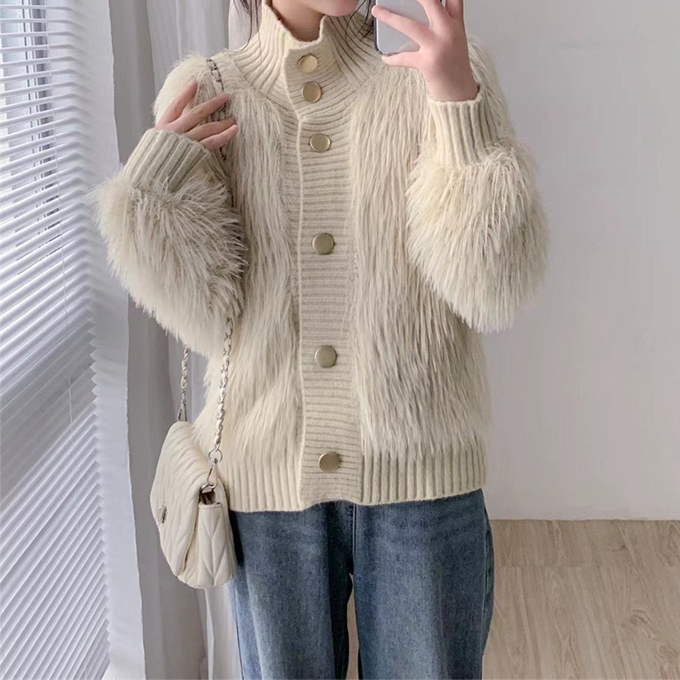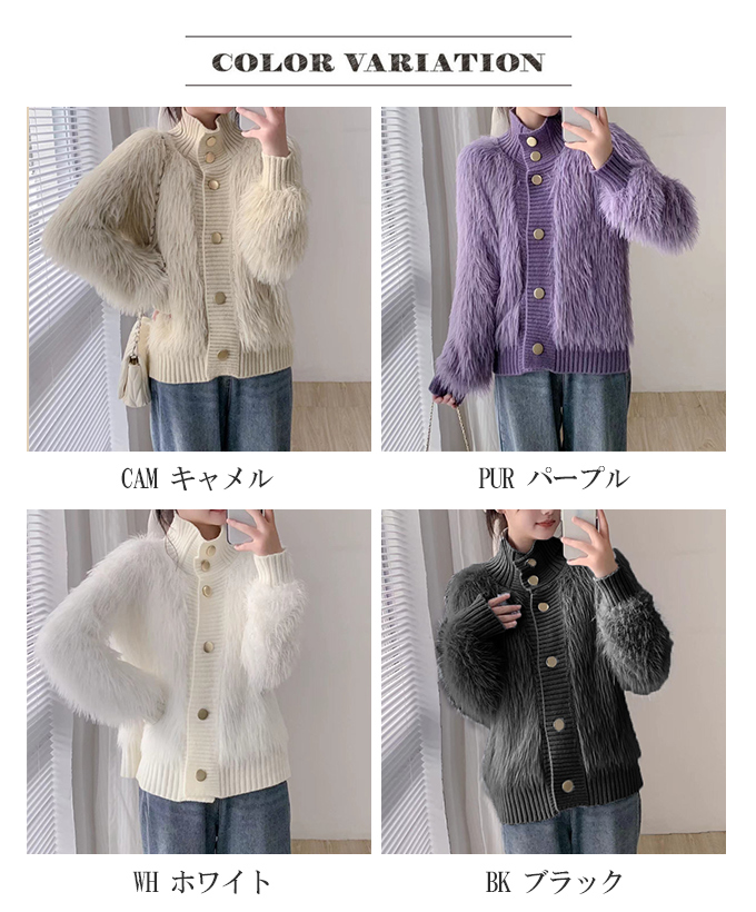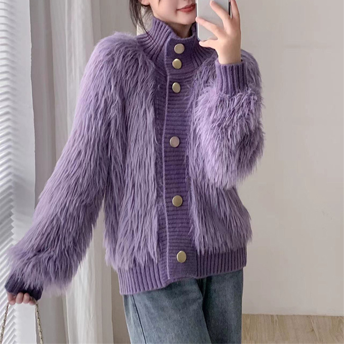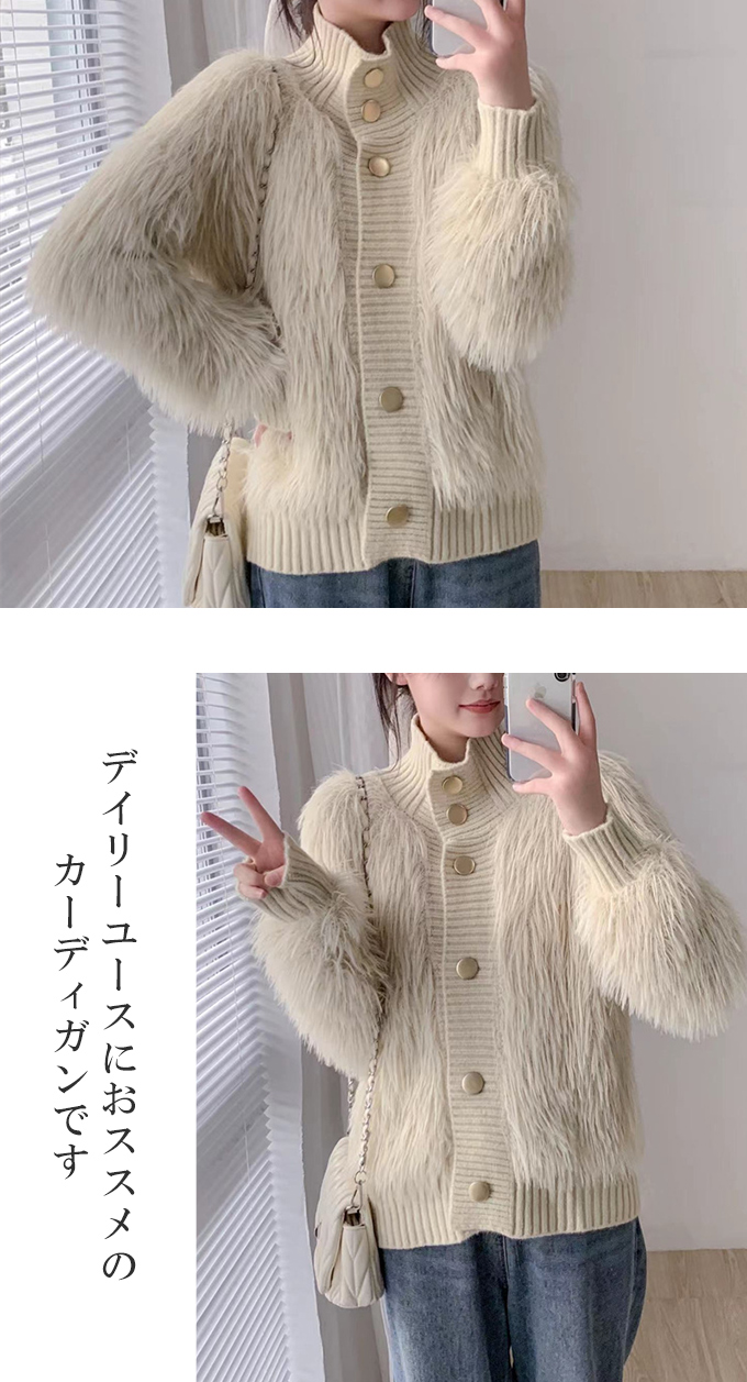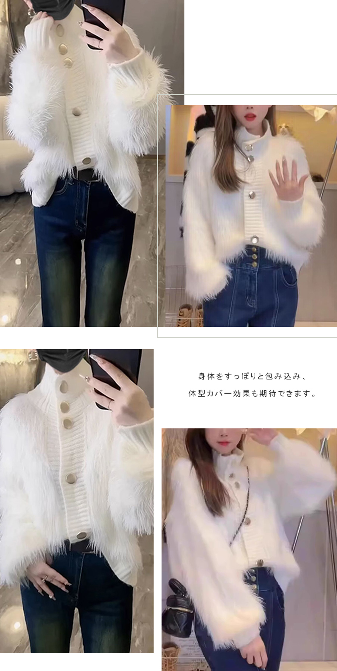 たっぷりと毛足の長いたシャギーニットを使用した華やかなカーディガン。