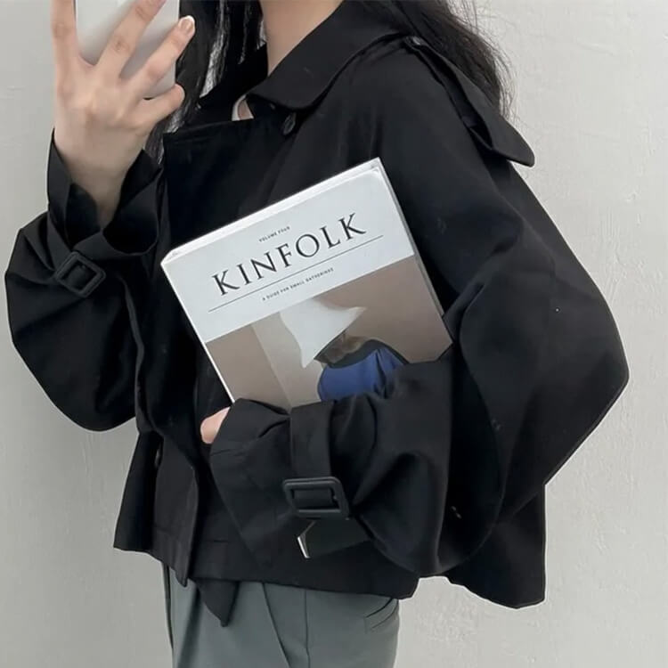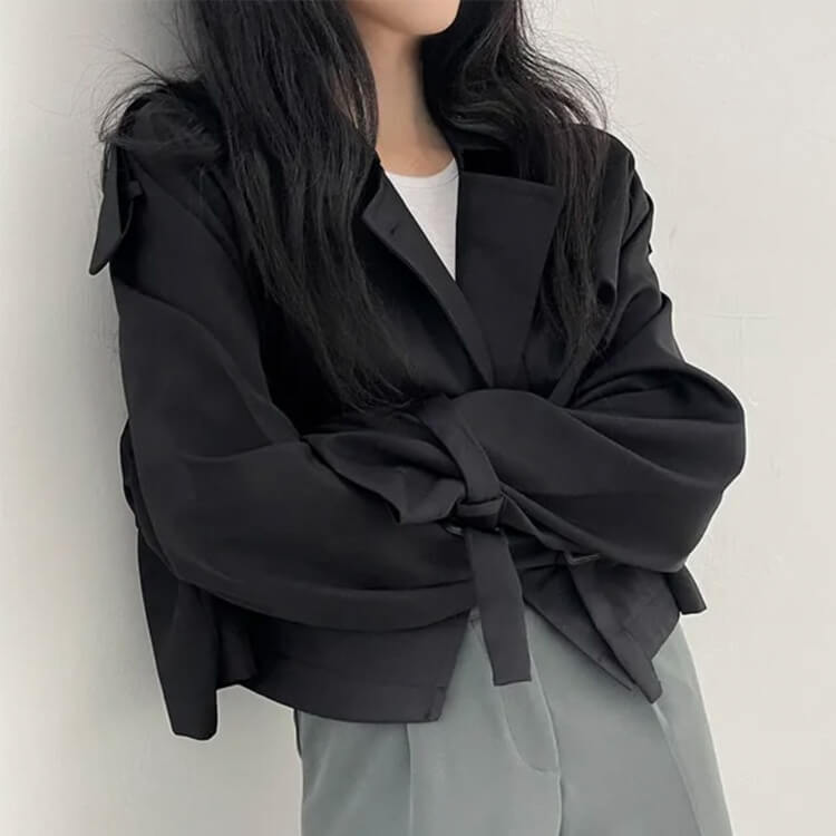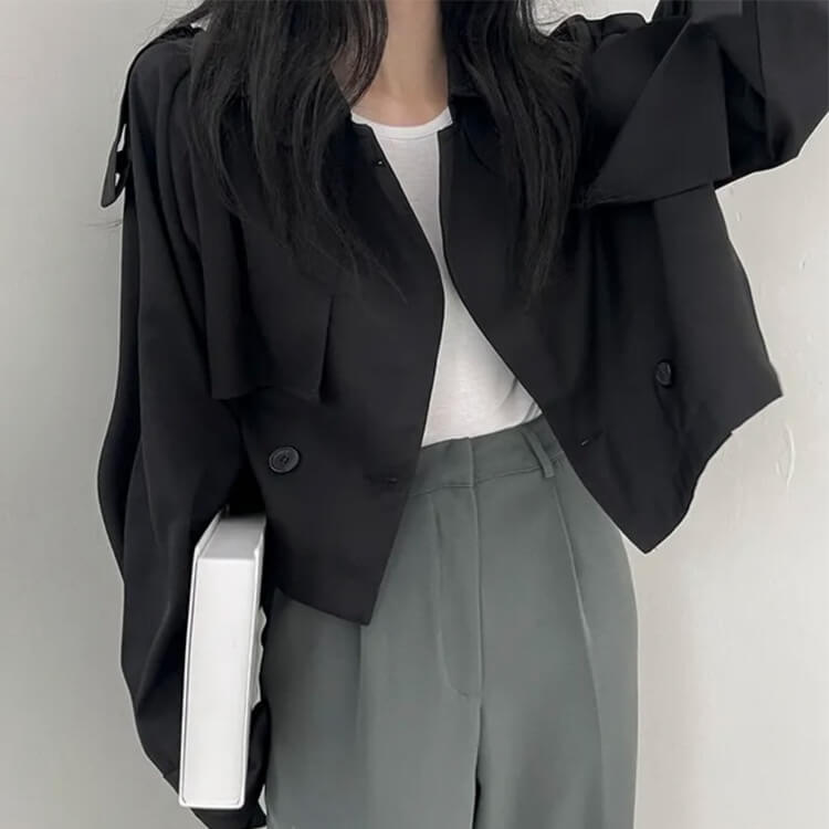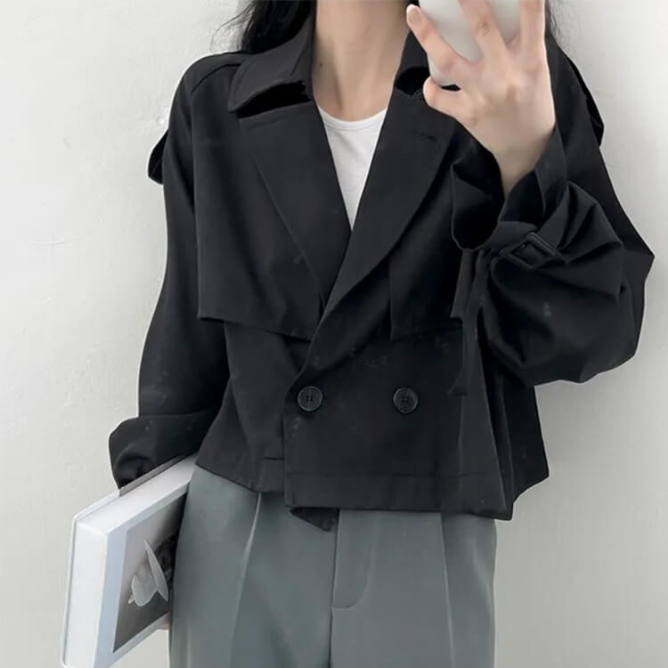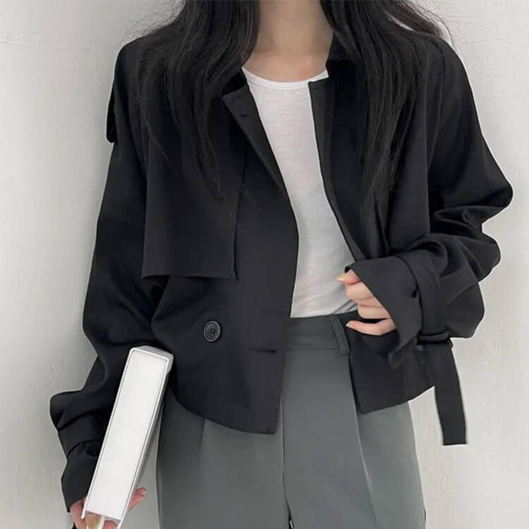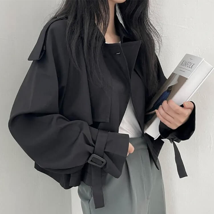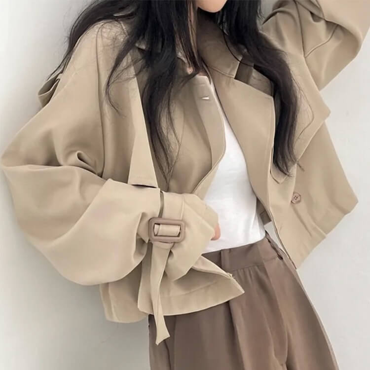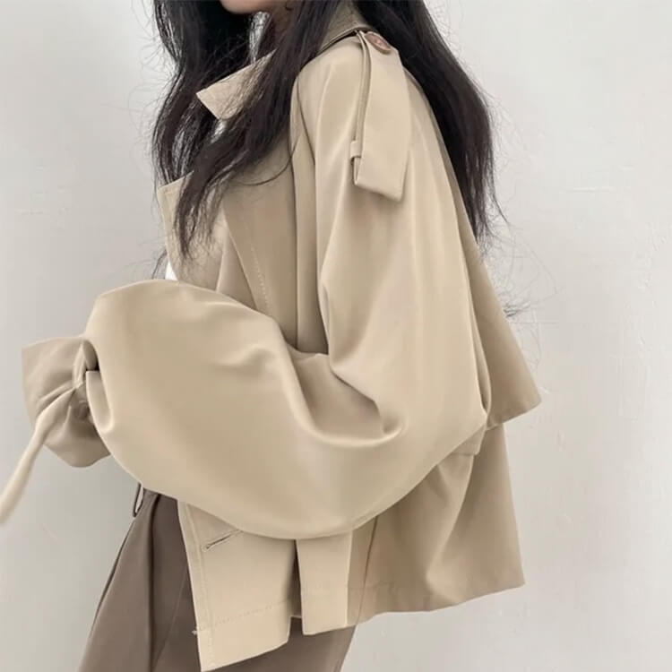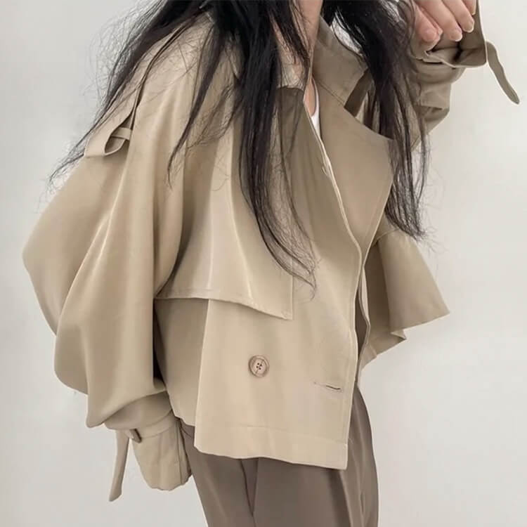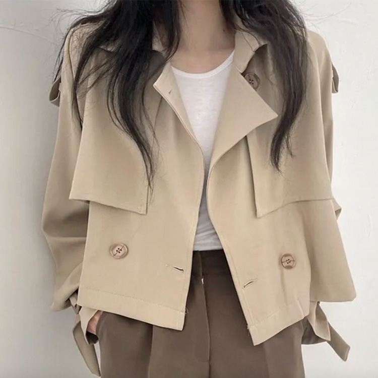 韓国デザインのカジュアルキレイなショート丈トレンチコート。