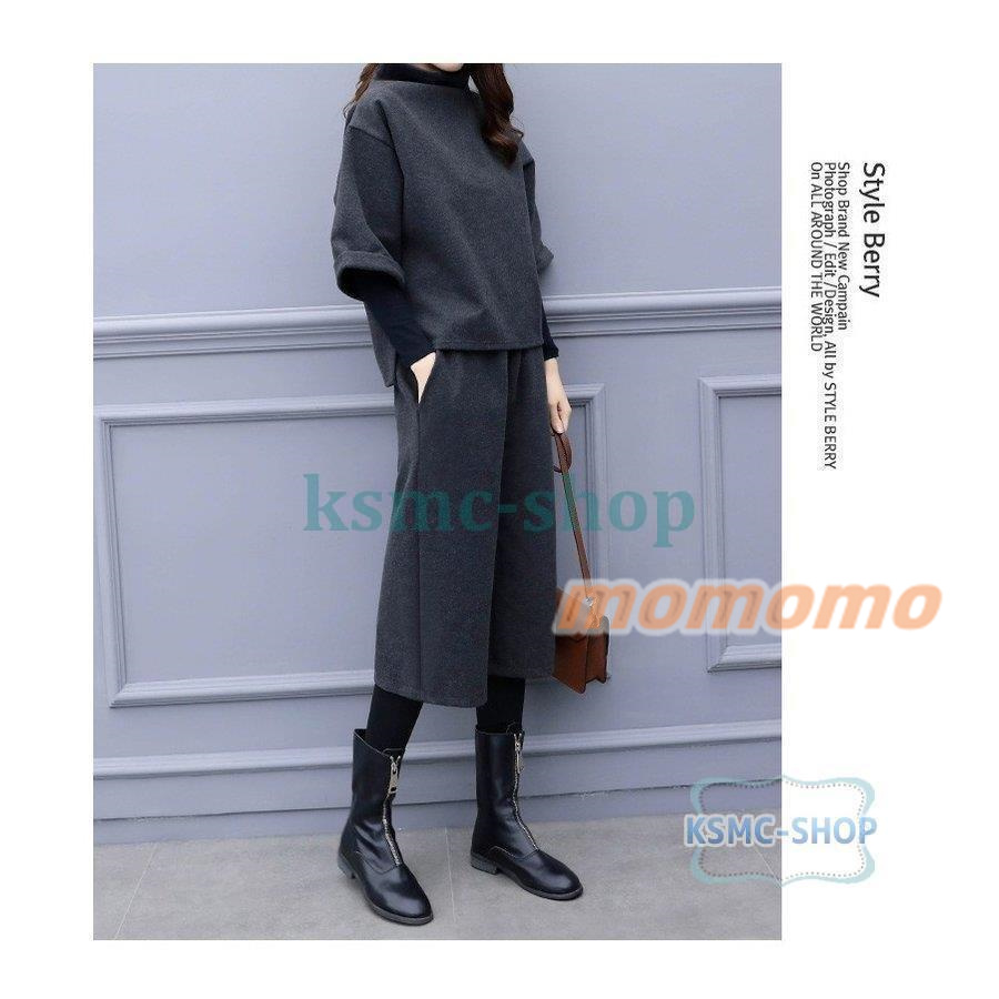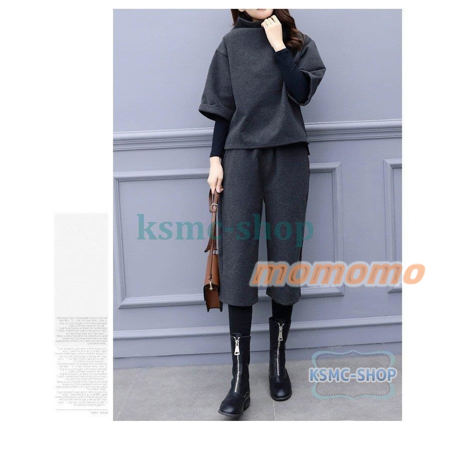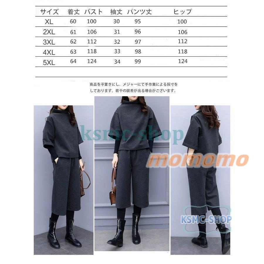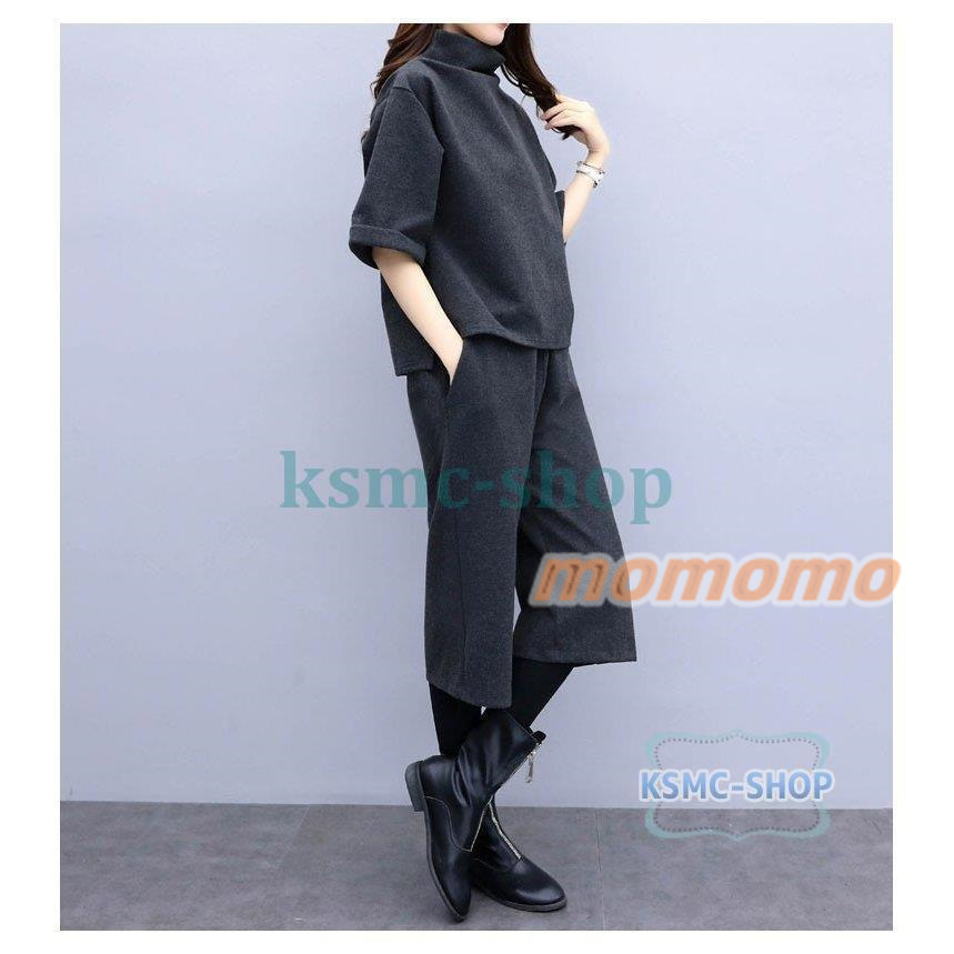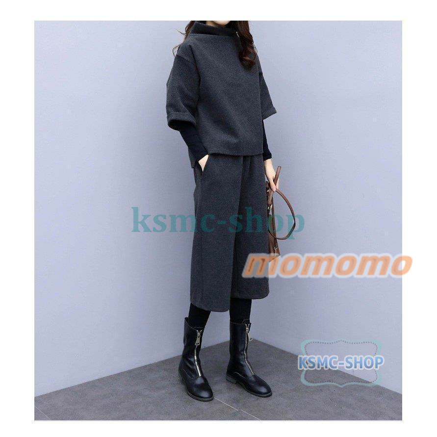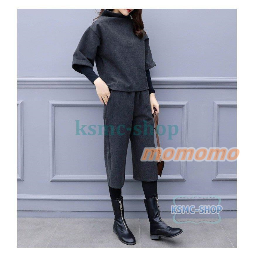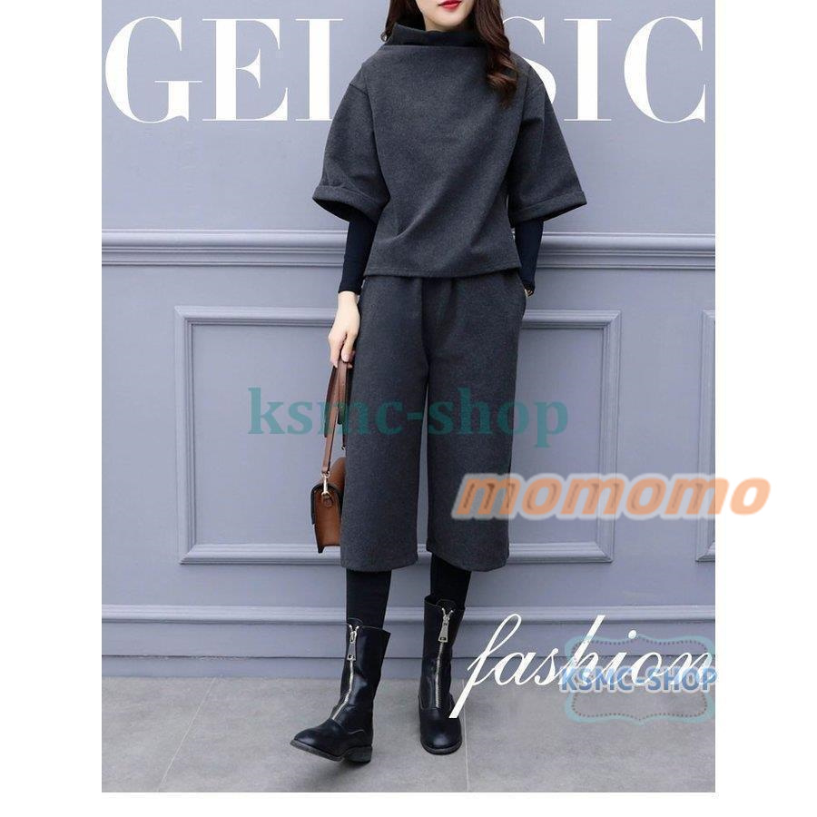 セットアップ レディース 秋冬 七分袖 トップス ハイネック 入学式 30代 卒業式 母 セレモニー 上下セット 通勤 大サイズ 40代 お洒落 ワイドパンツ