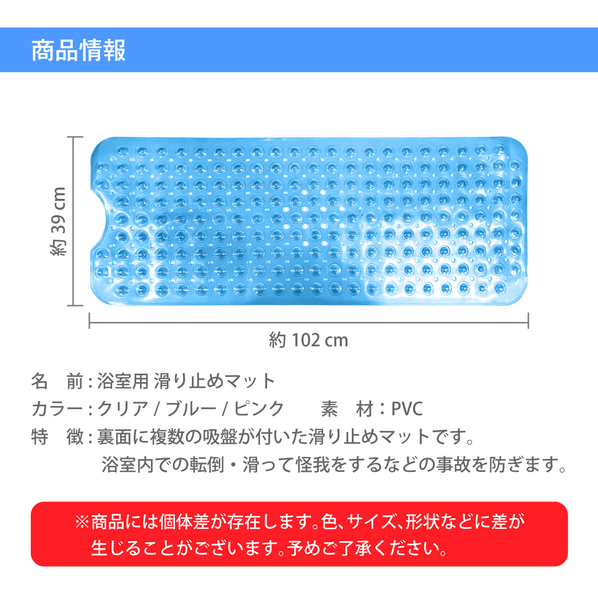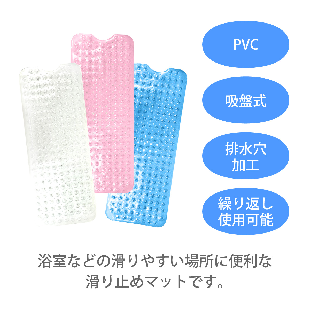浴室などの滑りやすい場所に便利な滑り止めマットです。