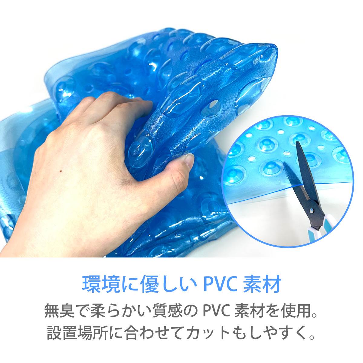 環境に優しいPVC素材 無臭で柔らかい質感のPVC素材を使用。設置場所に合わせてカットもしやすい。