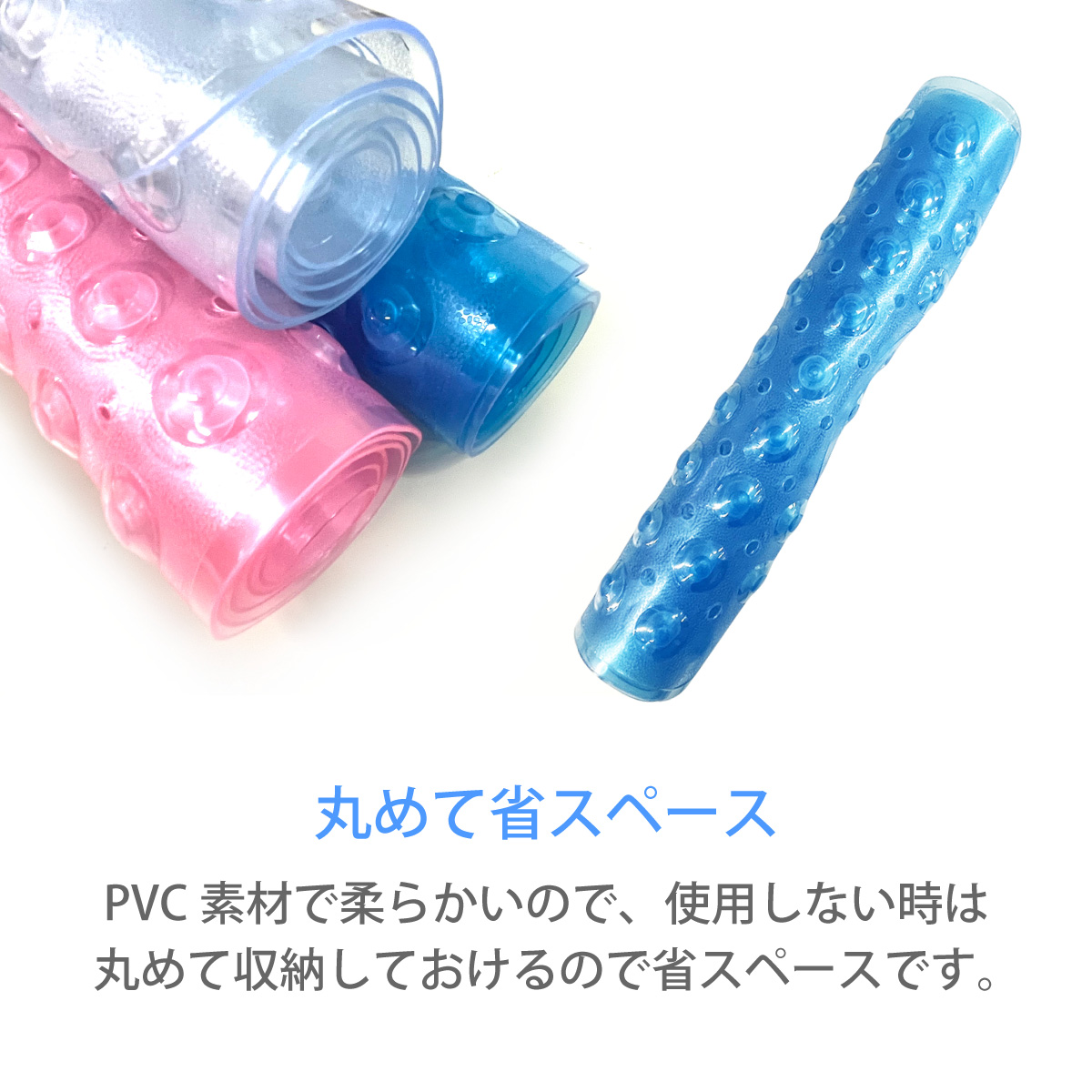 丸めて省スペース PVC素材で柔らかいので、使用しない時は丸めて収納できます。