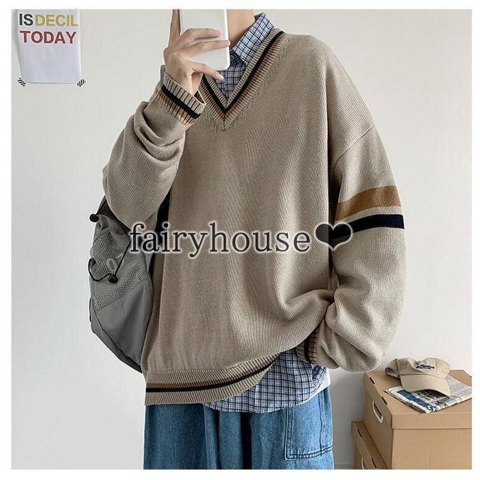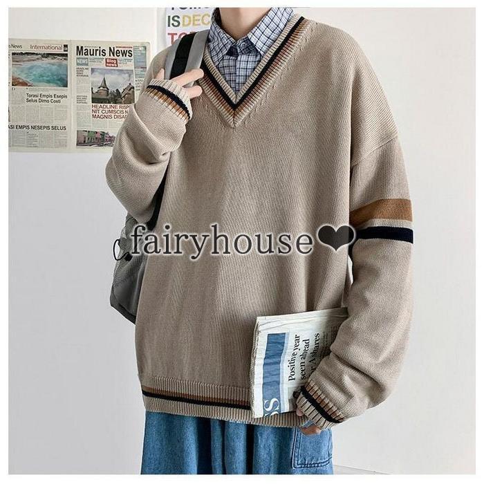 連携キーワード :ニットセーター メンズ 秋冬 長袖 ニットトップス Vネックセーター 配色 無地セーター プルオーバーニットインナー カットソー 韓国風 カッコイイカジュアル