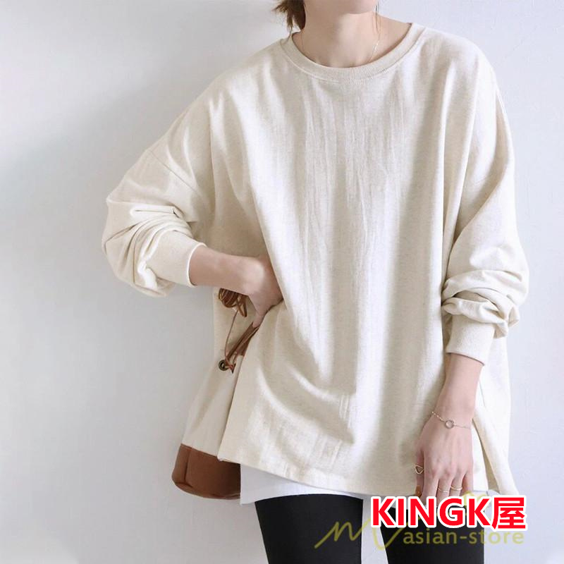 ロングTシャツ 新作 新着 洗濯可 無地トップス ロングトレーナー 長袖 レディース
