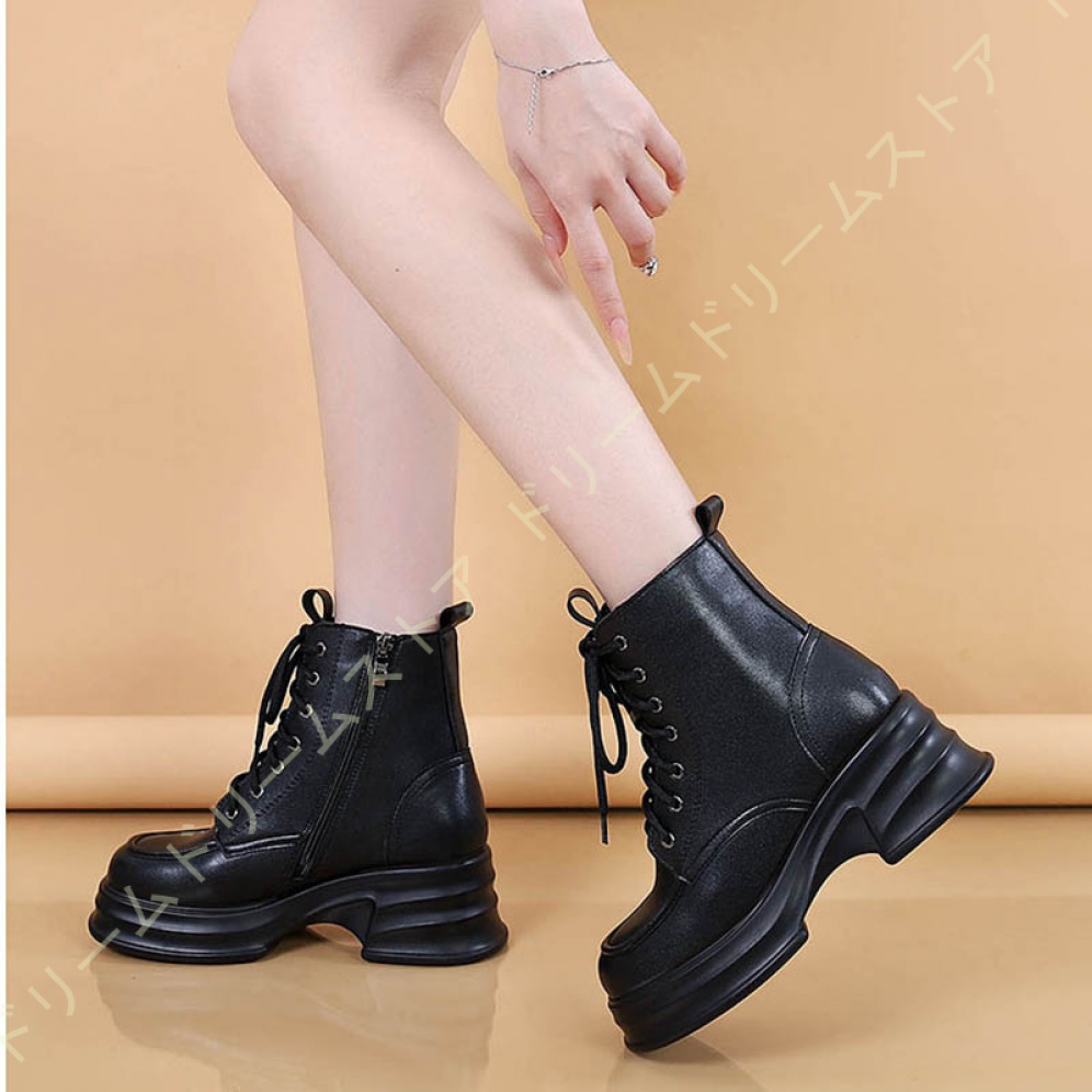厚底ブーツ 厚底 ブーツ レディース ショートブーツ 編み上げブーツ レースアップ 防水 ストーム 前厚 ウェッジソール ハイヒール ブーティ 裏起毛 冬ブーツ 袴ブーツ ワークブーツ ハロウィン コスプレ イベント