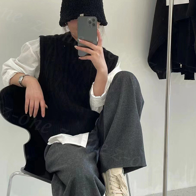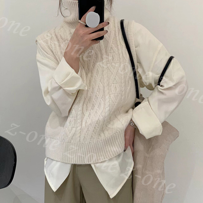ベスト ニット プルオーバー レディース 新作 レイヤード 通学 春 Vネック 大人 秋冬 ゆったり 柔らかい 通勤 体型カバー 学生 保温 ケーブル編み 可愛い