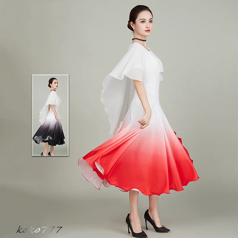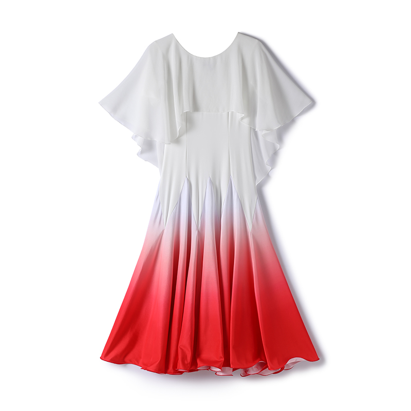 ワンピース レディース ロングドレス ラテンダンス ウェア パーティー 社交ダンス 発表会 白 ナショナルダンス グラデーション 舞台衣装 ワルツ モダンダンス