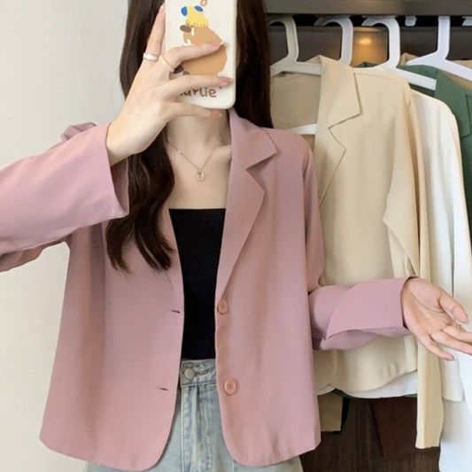 商品名:スーツジャケット 春秋 レディース 長袖 テーラードスーツ オフィス ライトアウター 通勤 オフィス OL 無地 ショート丈 体型カバー お洒落 大きいサイズ