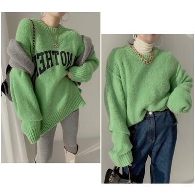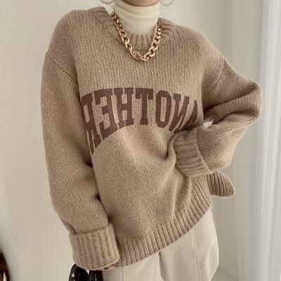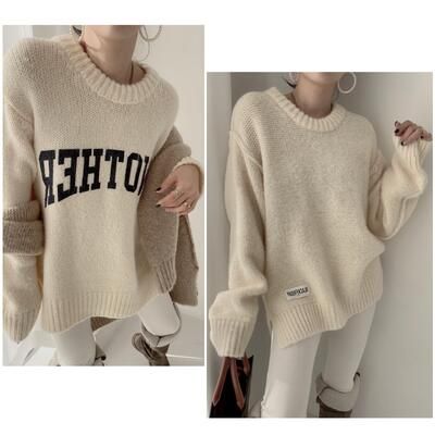 ニット セーター ロゴ リバーシブル レディース トップス プルオーバー 可愛い ピンク オーバーサイズ おしゃれ 長袖 カジュアル 体型カバー シンプル ゆったり