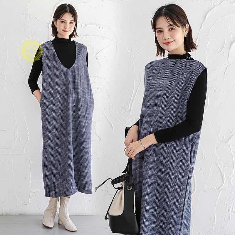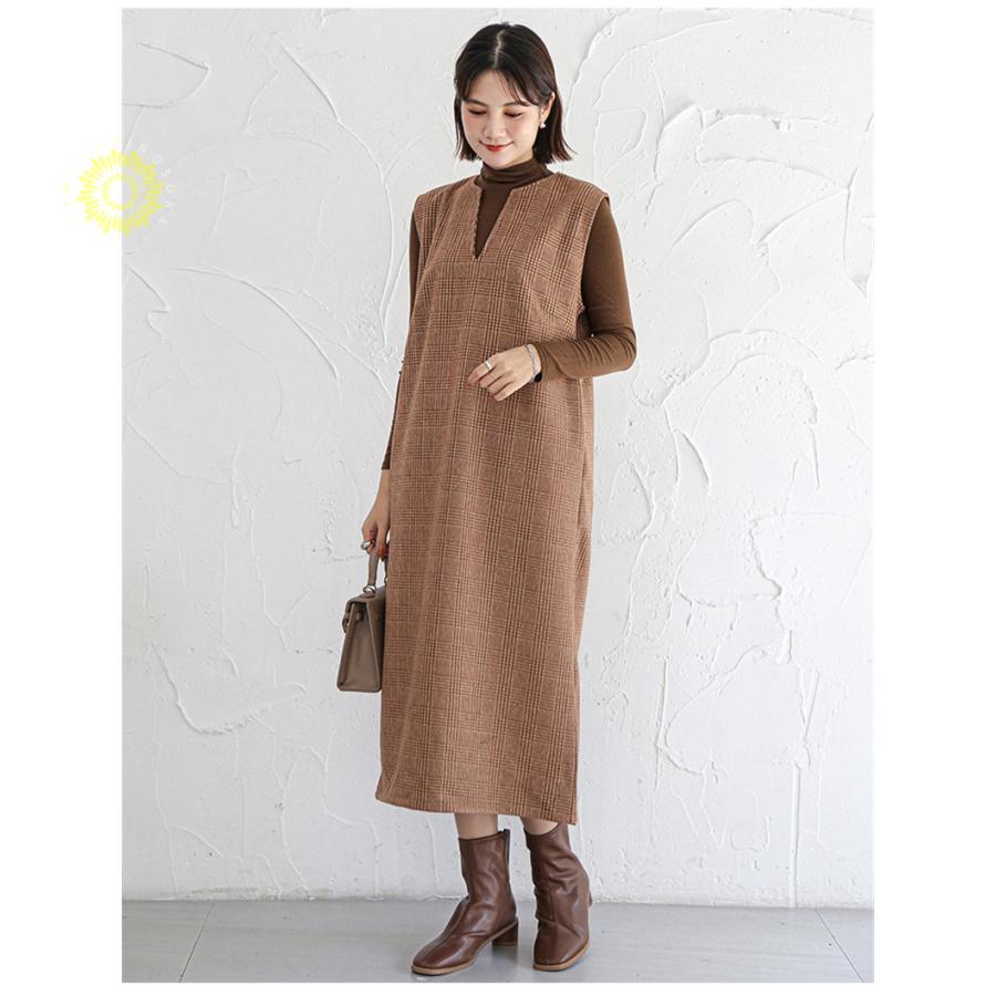 ★キーワード:Iライン ワンピース ジャンパースカート Vネック 大人 秋 冬 秋冬 レディース 大きいサイズ きれいめ おしゃれ オフィスカジュアル セットアップ ジャンスカ 膝丈