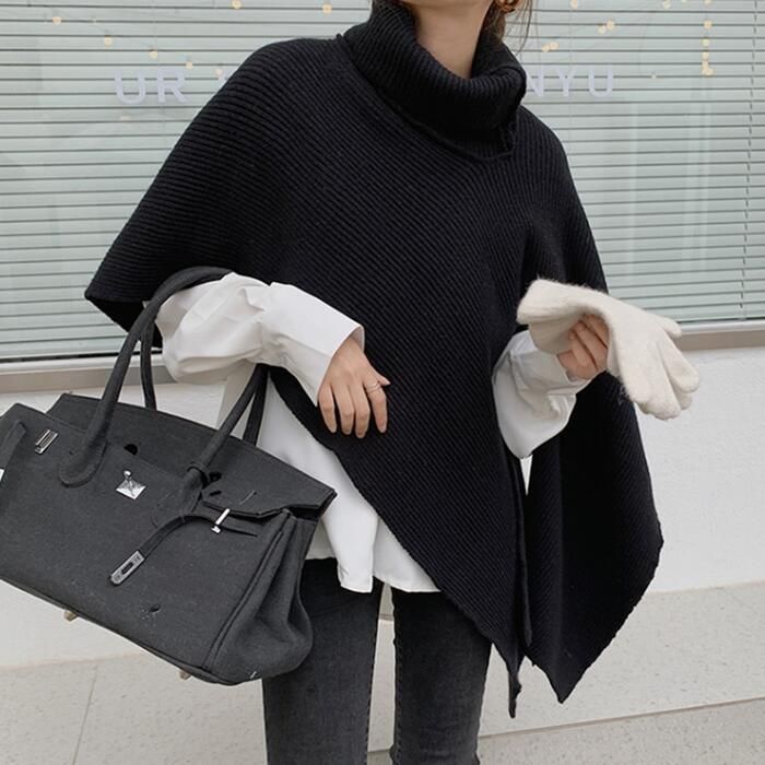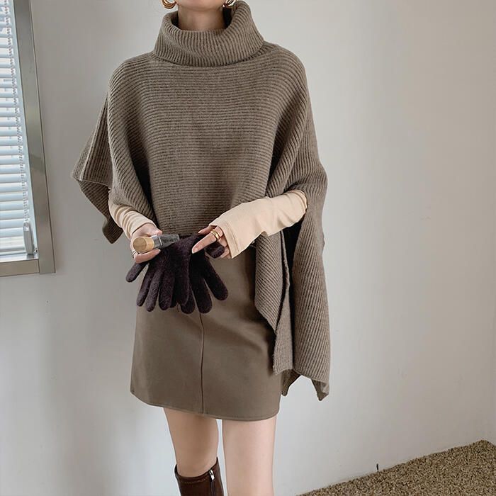トップス ニット セーター ポンチョ ケープ タートルネック 春 可愛 ブラック カジュアル レディース ベージュ ブラウン おしゃれ グレー 大人 秋 黒 きれいめ