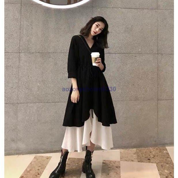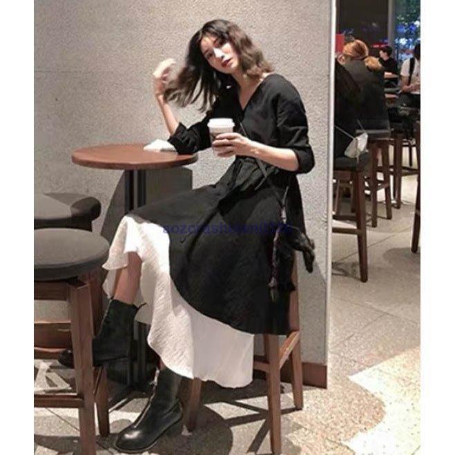 ワンピース シースルーワンピース シャツワンピ 2点セット Aラインワンピース シャツワンピース ロング丈 不規則裾
