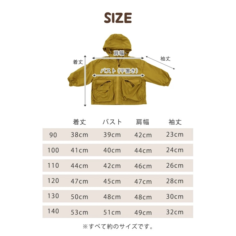 120CM:着丈47CM×バスト45CM×肩幅47CM×袖丈28CM