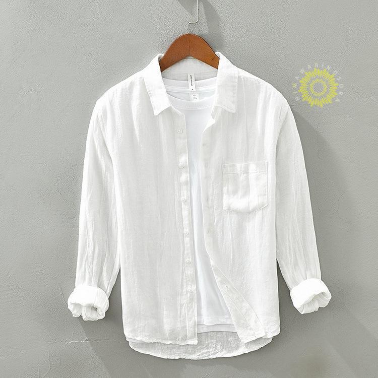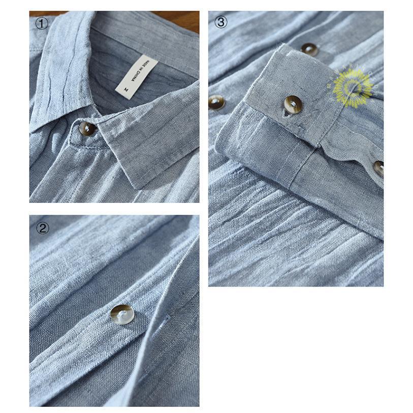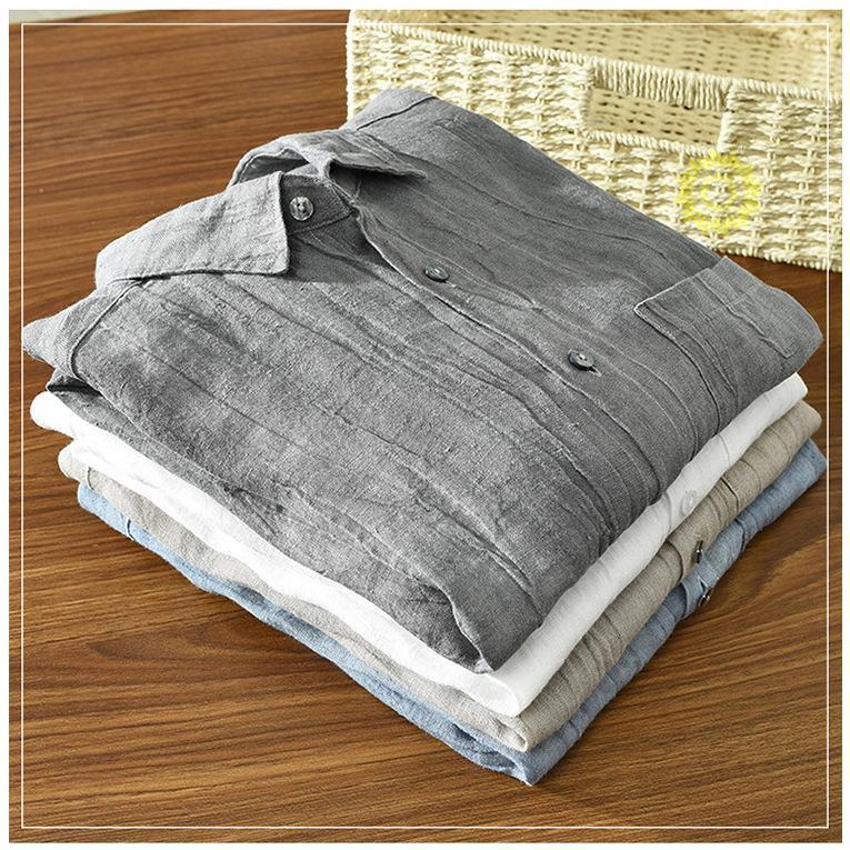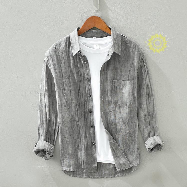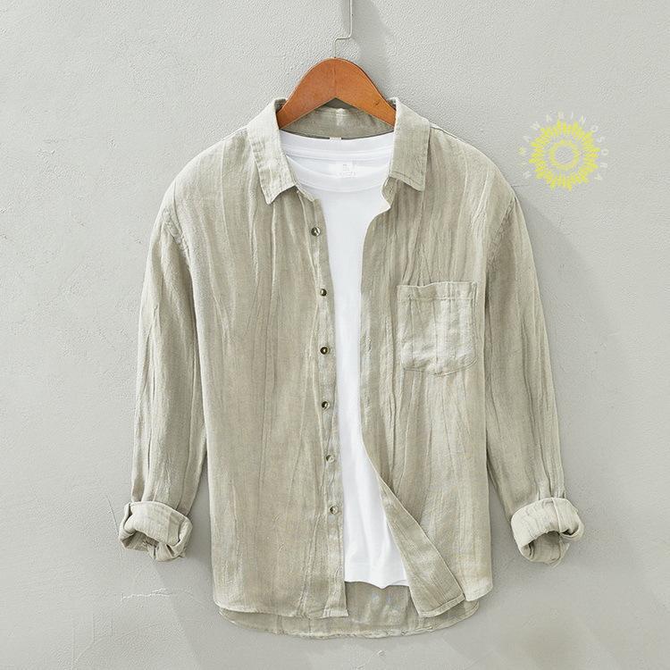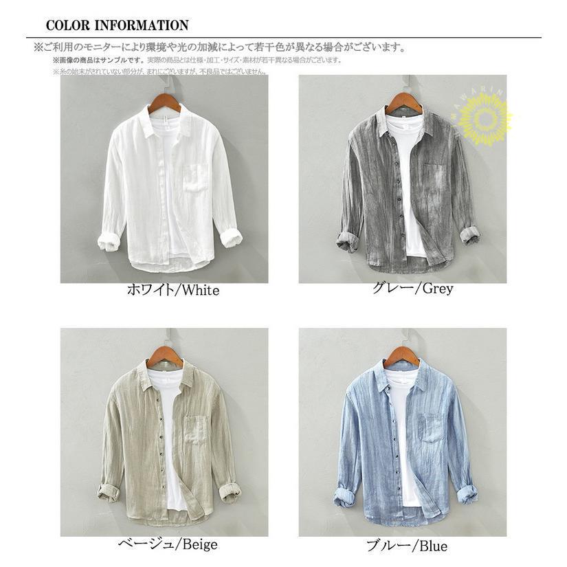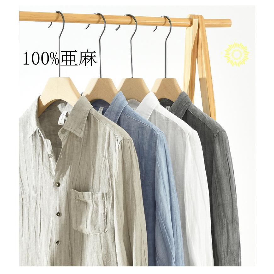 リネンシャツ カジュアルシャツ 亜麻 シャツ メンズ トップス しわ加工 長袖 リネン 清涼 爽快