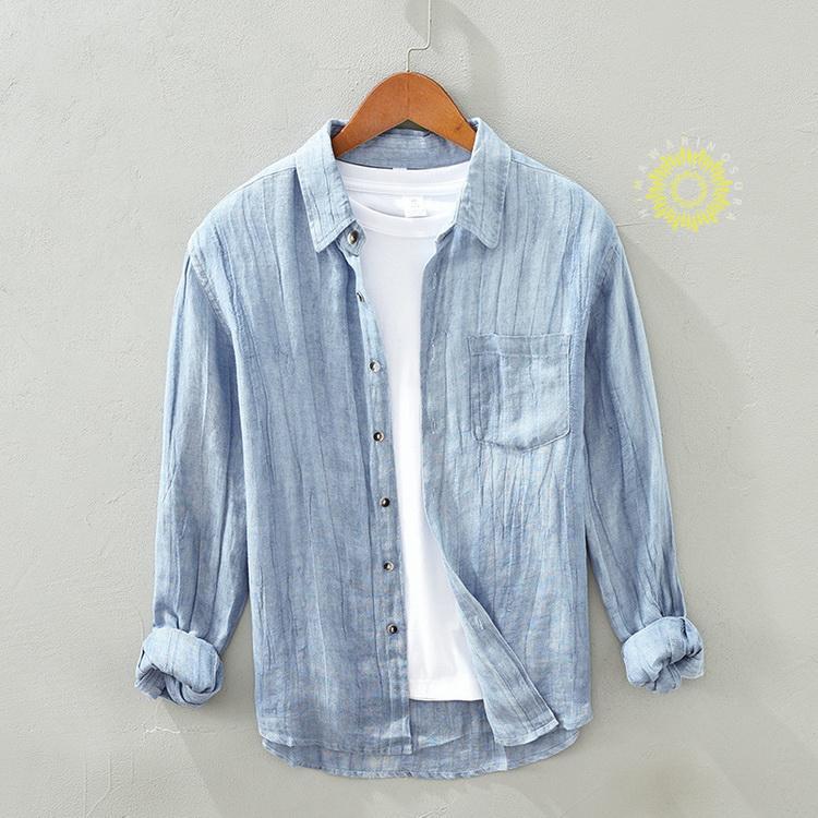 リネンシャツ カジュアルシャツ 亜麻 シャツ メンズ トップス 清涼 爽快 リネン しわ加工 長袖