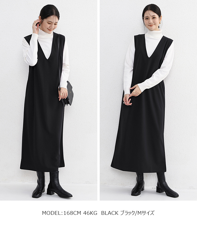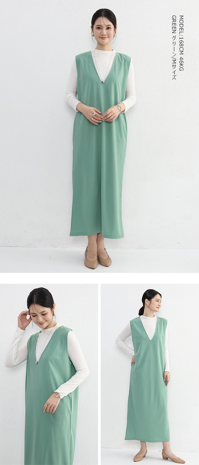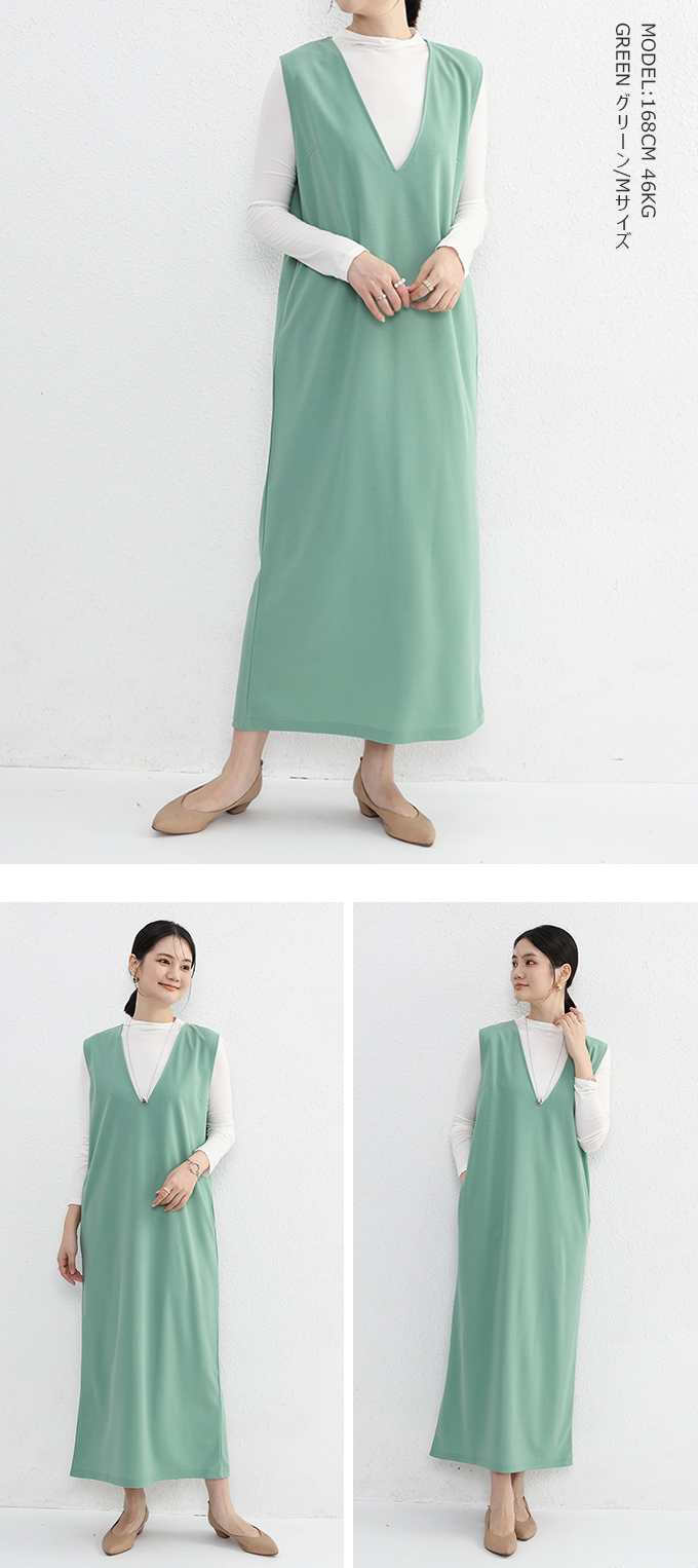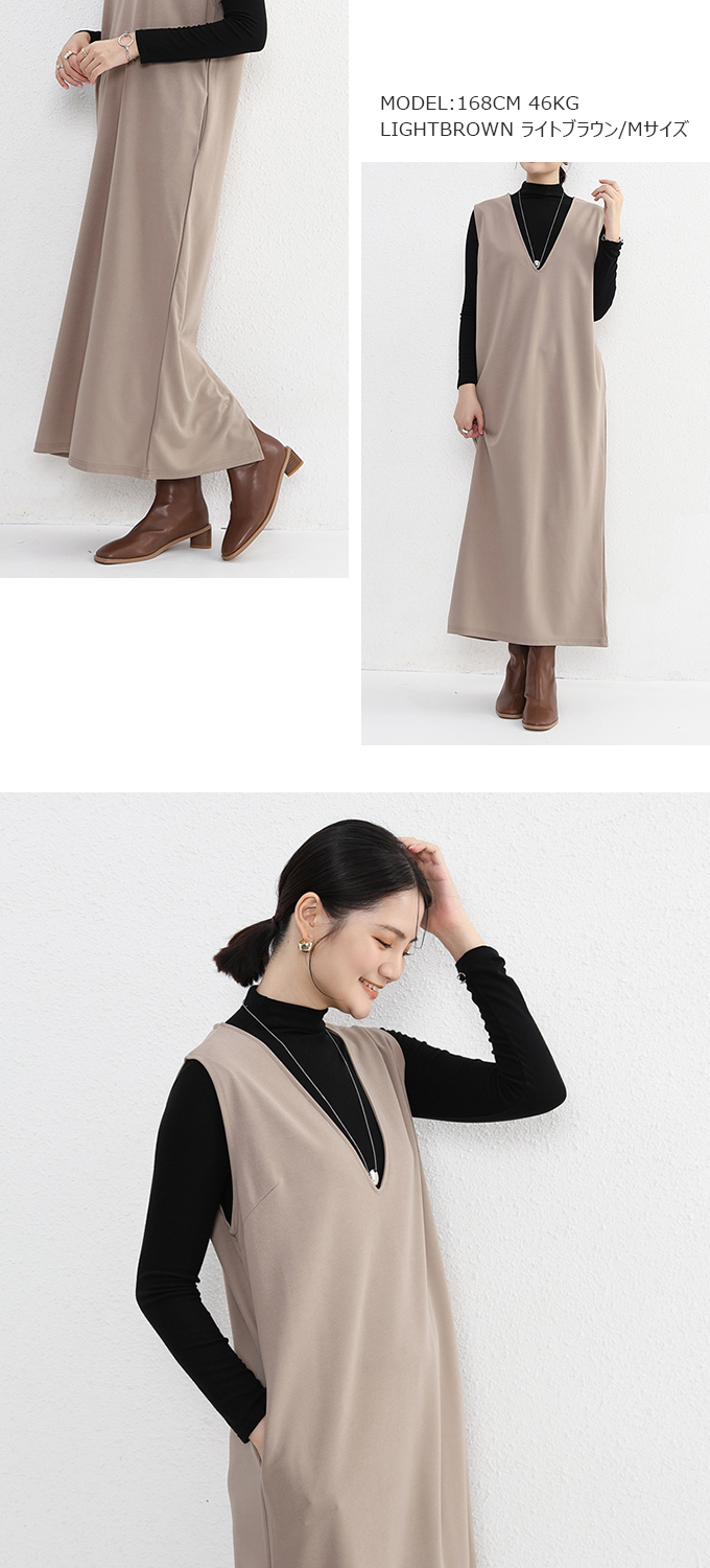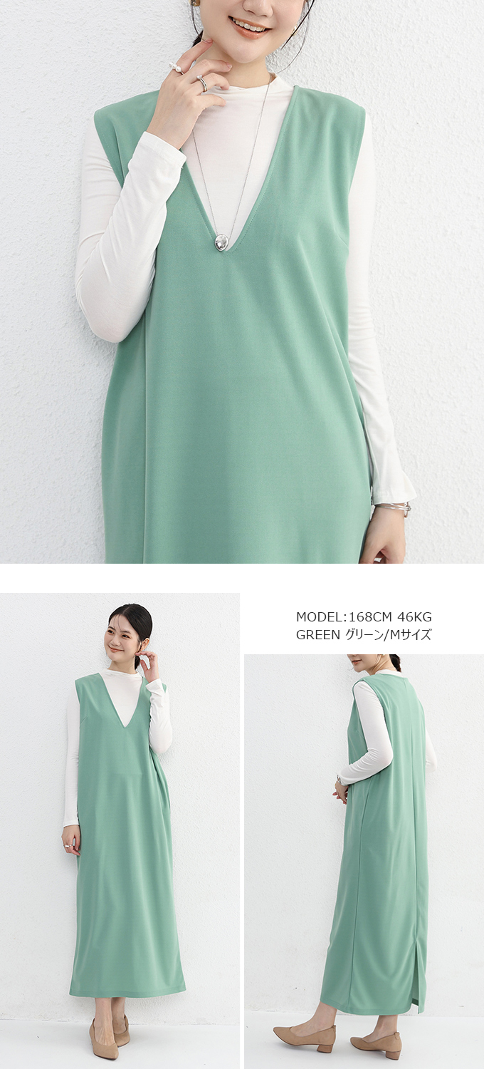 Vネックジャンパースカート ワンピース 体型カバー レイヤード レディース ジャンパースカート